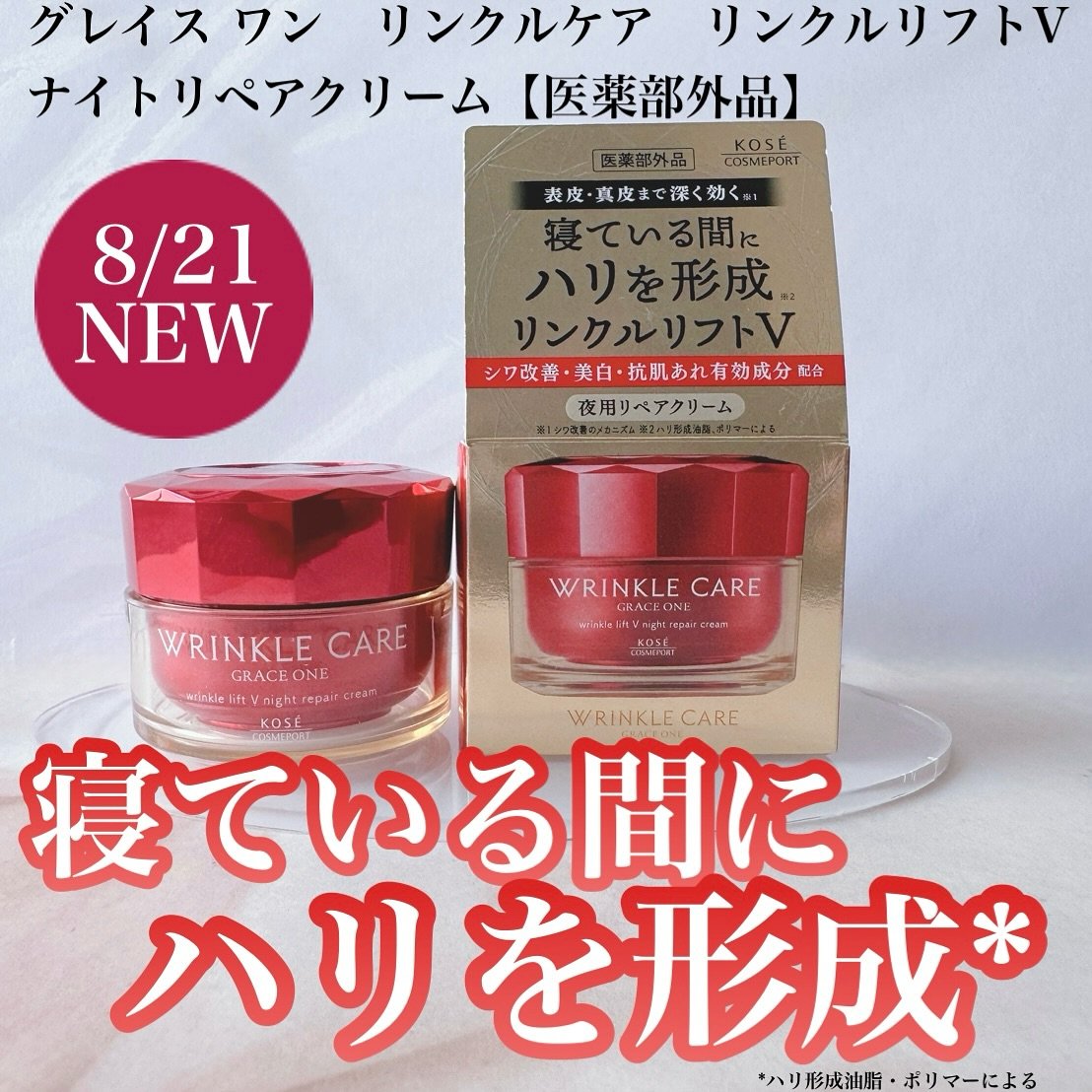 LemonSquareを通じて、【コーセーコスメポート株式会社】から【グレイスワン リンクルケア リンクルリフトV ナイトリペアクリーム】を提供していただきました。グレイスワン リンクルケア リンクルリフトV ナイトリペアクリーム【医薬部外品...