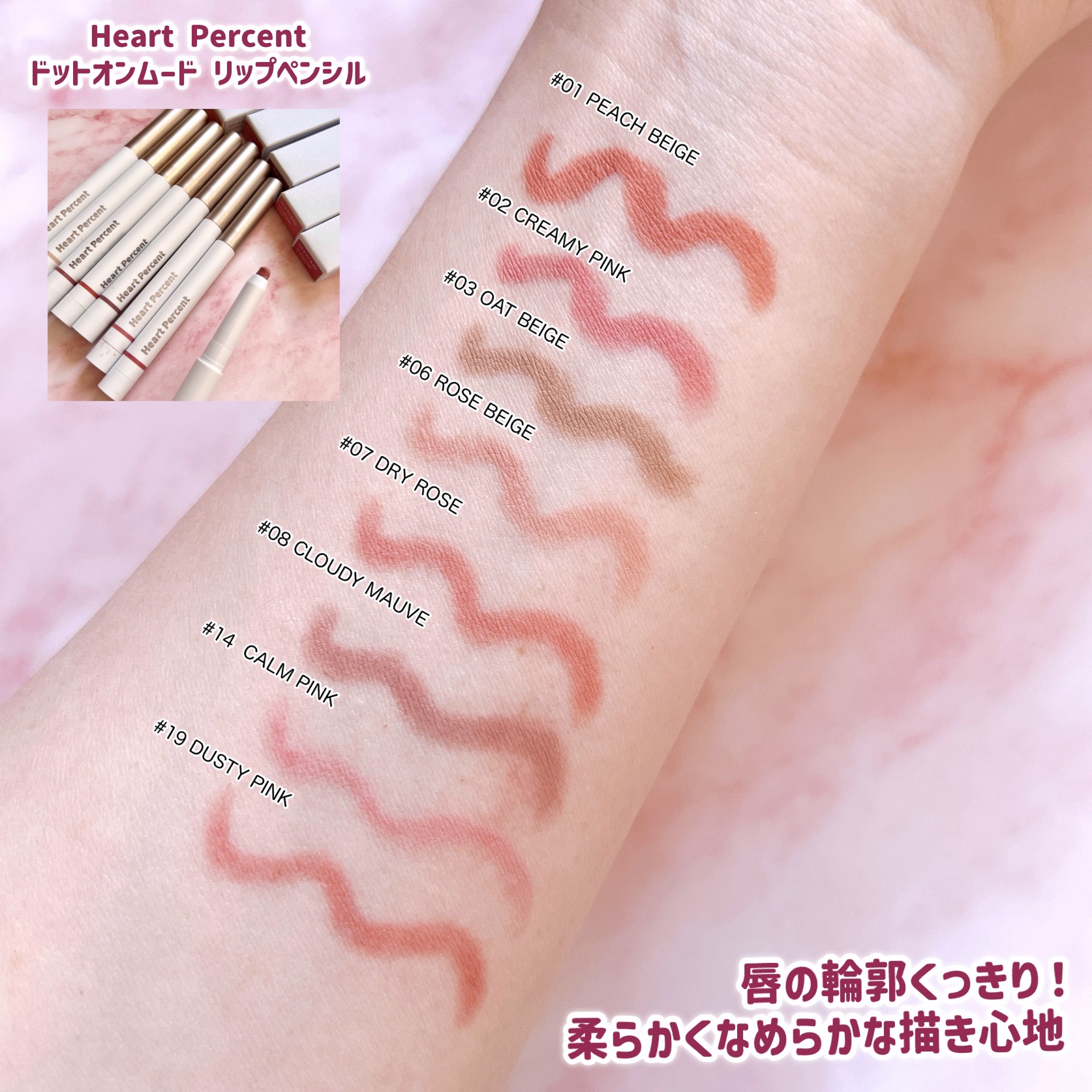 heartpercentLip05/09/11&LipPencil21輪郭を自然に整えるLペンシル21で仕上げると唇の立体感がぐっと増して、仕上がりが一気に上がる🤍柔らかいのにブレない描き心地ち🤍︎05:透明感がふわっとピーチローズ09:深み...