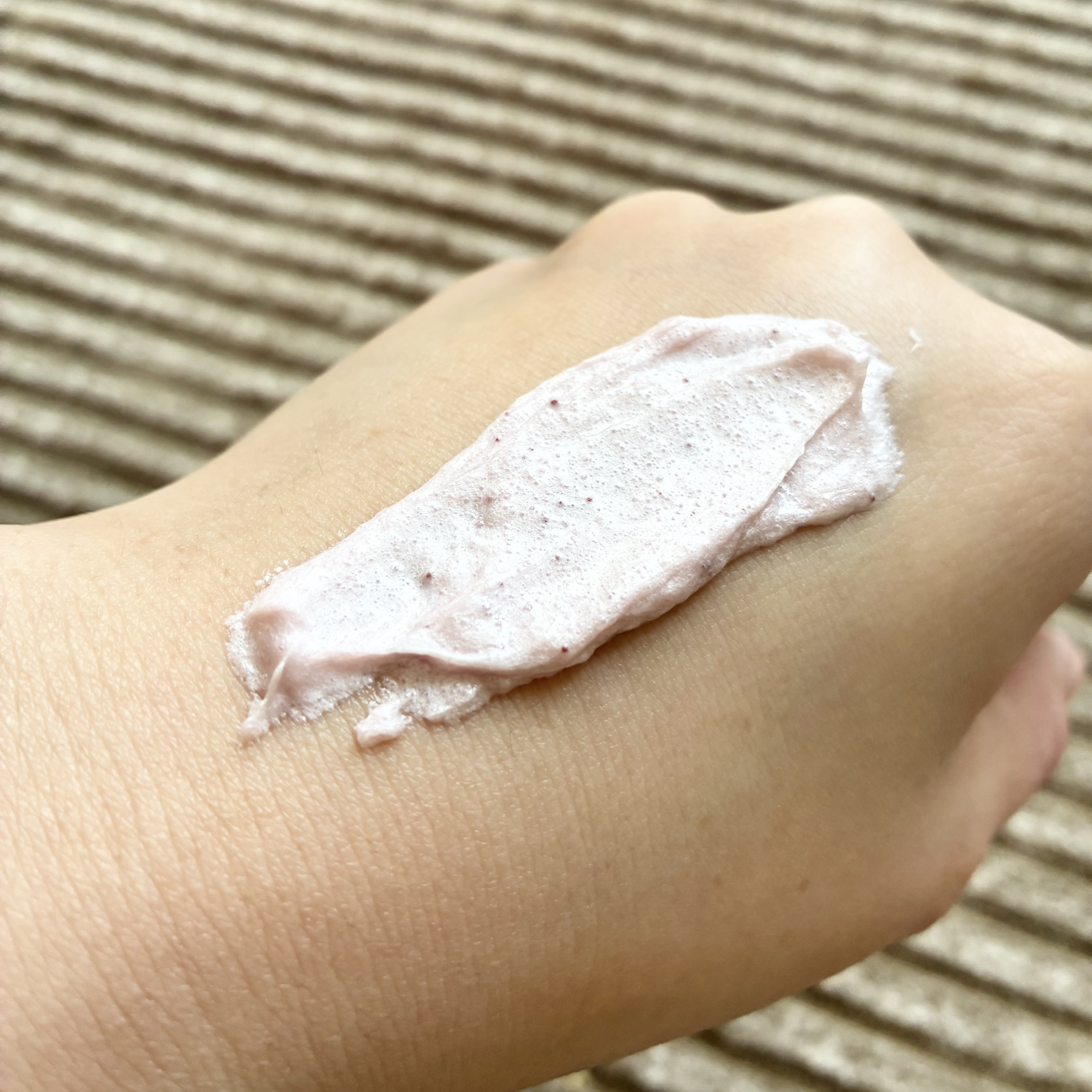 角質オffで透明感! いつもの紫外線対策にプラスして角質ケアで透明感のある肌を手に入れたい! ふわふわテクスチャ! スクラブの粒も硬すぎず大きすぎず、肌の上でくるくるすると痛みなく角質オffできます🌸 シアバターの甘ーい香り あまり強く残るわけではないので、翌日にはほとんど感じません。