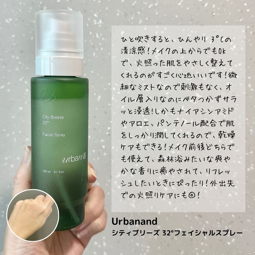 お肌が最も心地よく感じる温度は32°Cなんだって!1回の使用で肌温度を−3°CクールダウンさせてくれるURBANAND《シティブリーズ32°フェイシャルスプレー》🧊”臨床で効果が確認されたCOOLIF™特許成分配合。使う前によく振るよ🪇!ミス...