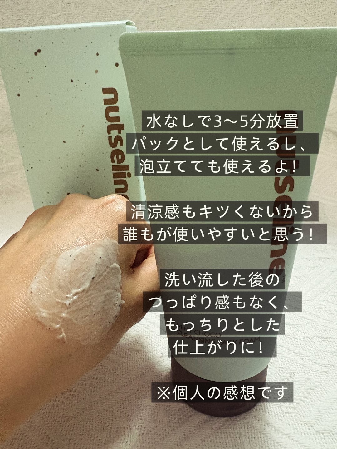 見た目も香りもチョコミント!チョコミント好きにはたまらない。nutselineチョコミントクレンジングパックフォーム3大肌悩みのために作られたパックフォーム。◯肌のほてり(ミント成分でほてりのケア)◯ブラックヘッド&ホワイトヘッド(カカオスク...