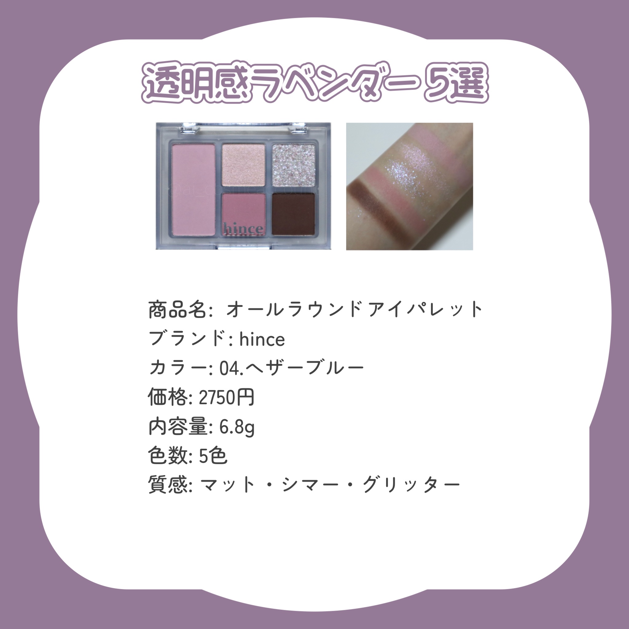 BeautyMeetsに参加した際にいただきました🙏hinceオールラウンドアイパレットヘザーブルーhinceのアイシャドウからチーク、ハイライトまでマルチに使える5色パレット♡統一感を出したいメイクを一つのパレットでいろいろ出来るから使い勝...