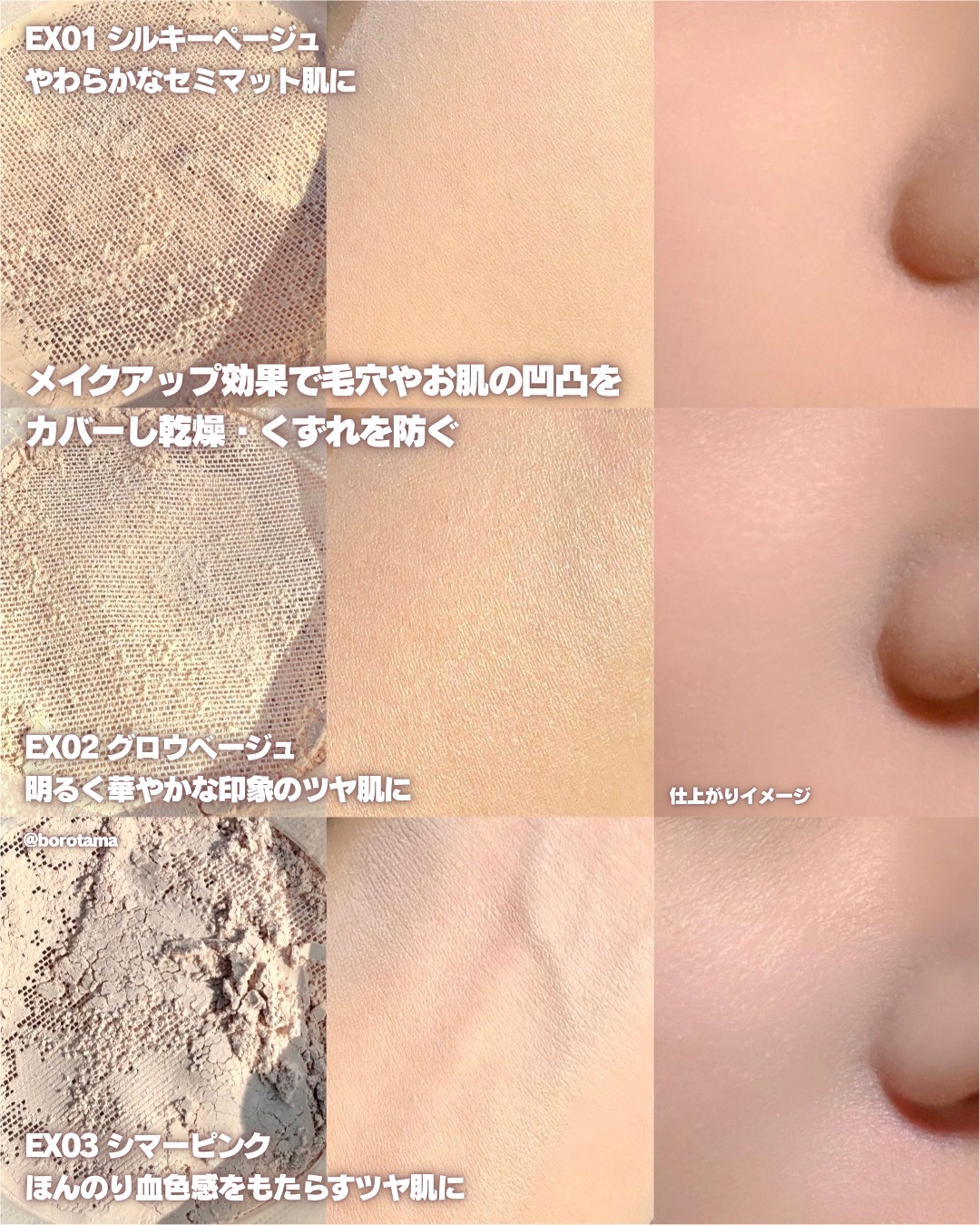 | 7色の微細パールで発光するようなツヤ肌に。ハイライトがわりにも使えそう! | 詳細を見る |