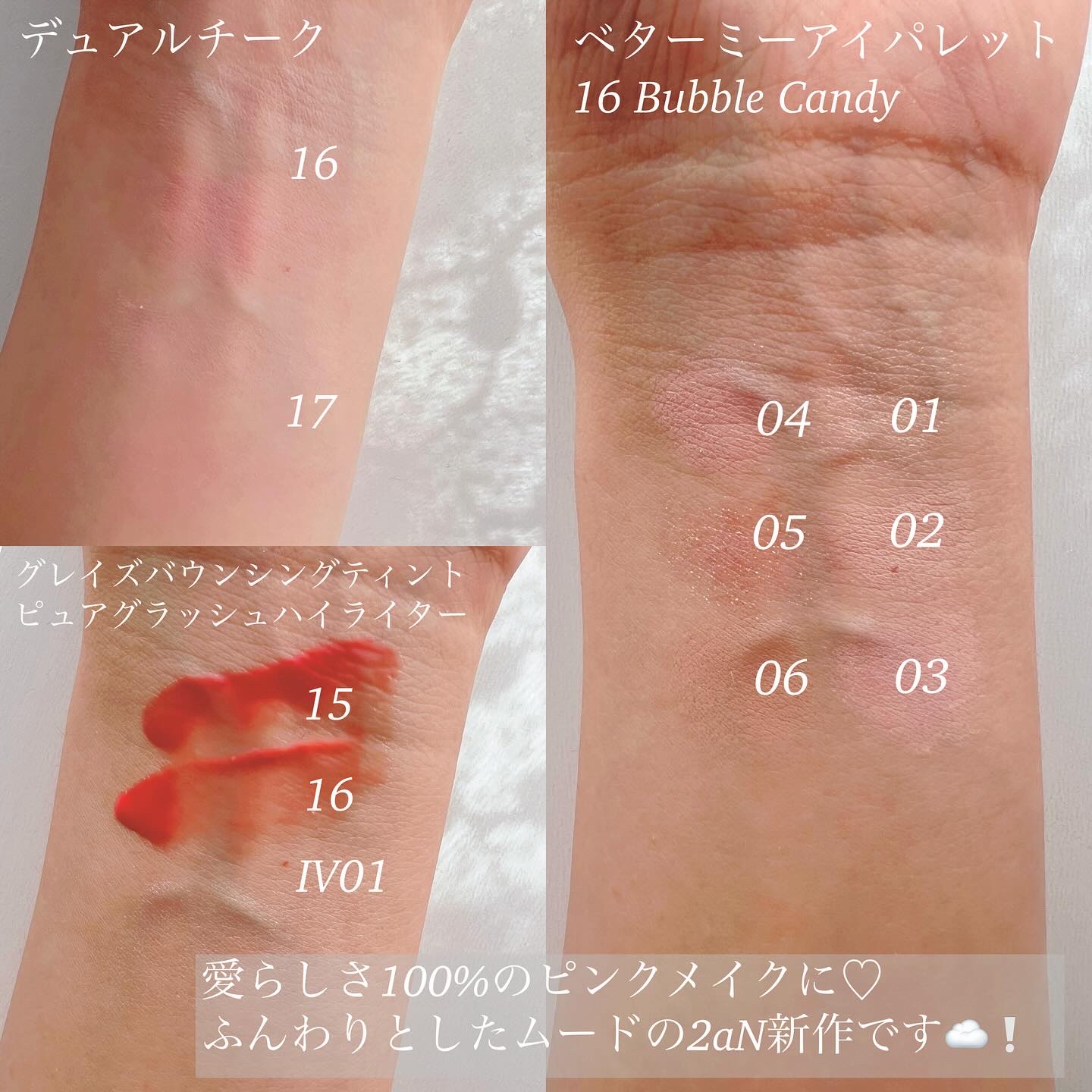 2aN@2an_official_jp様【新作】ラブバブルコレクション💗🫧全部使って仕上げると超かわいいピンクメイク🩷リップやチーク、アイシャドウの組み合わせ次第で雰囲気を変えられるのが楽しい❣️🎨ベターミーアイパレット16バブルキャンディー...