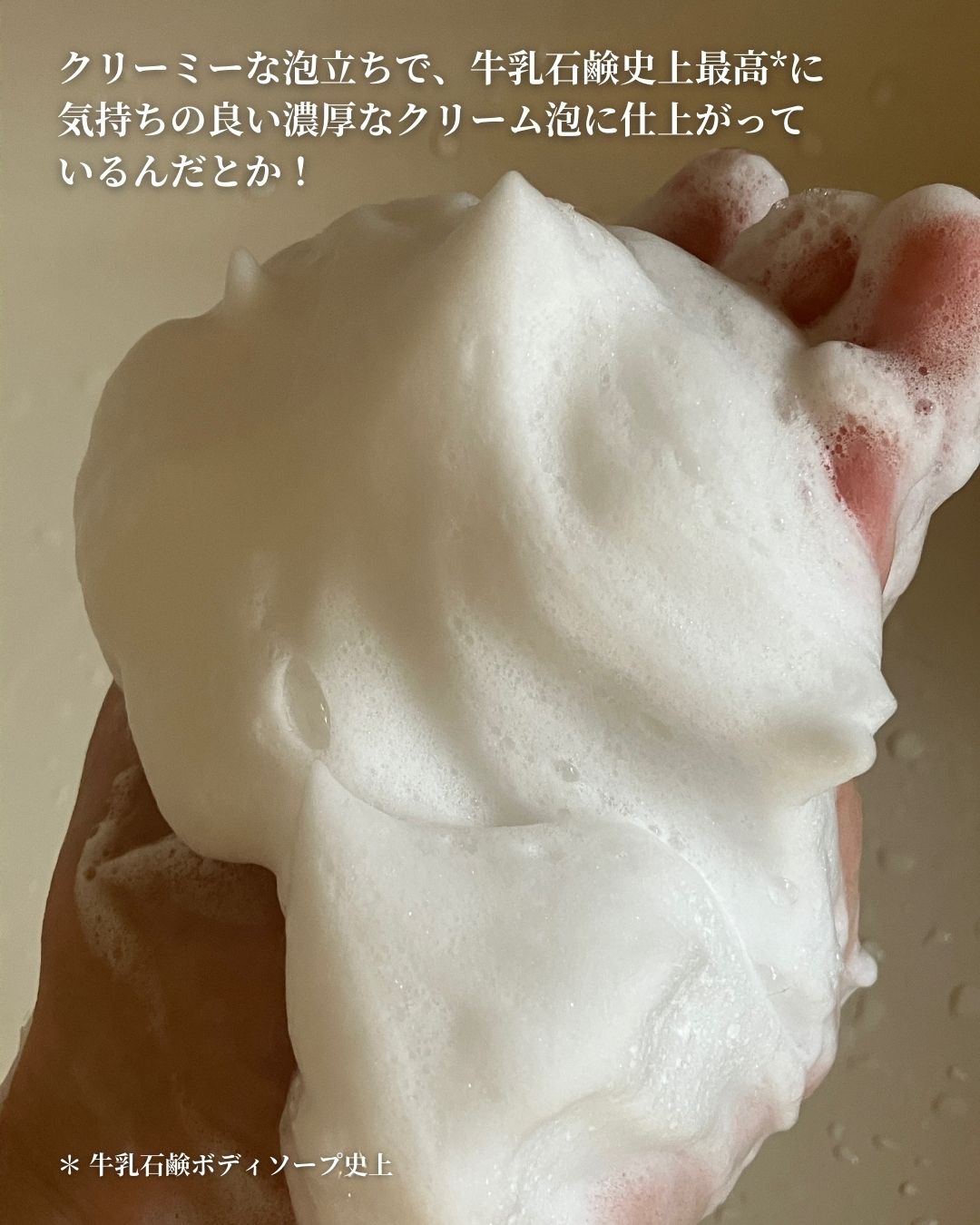 | 泡がしっとりなめらか濃密!! なのに泡切れも良くさらっと流れせてぬるつきも残らないのがうれしいポイントです♬ | 詳細を見る | |