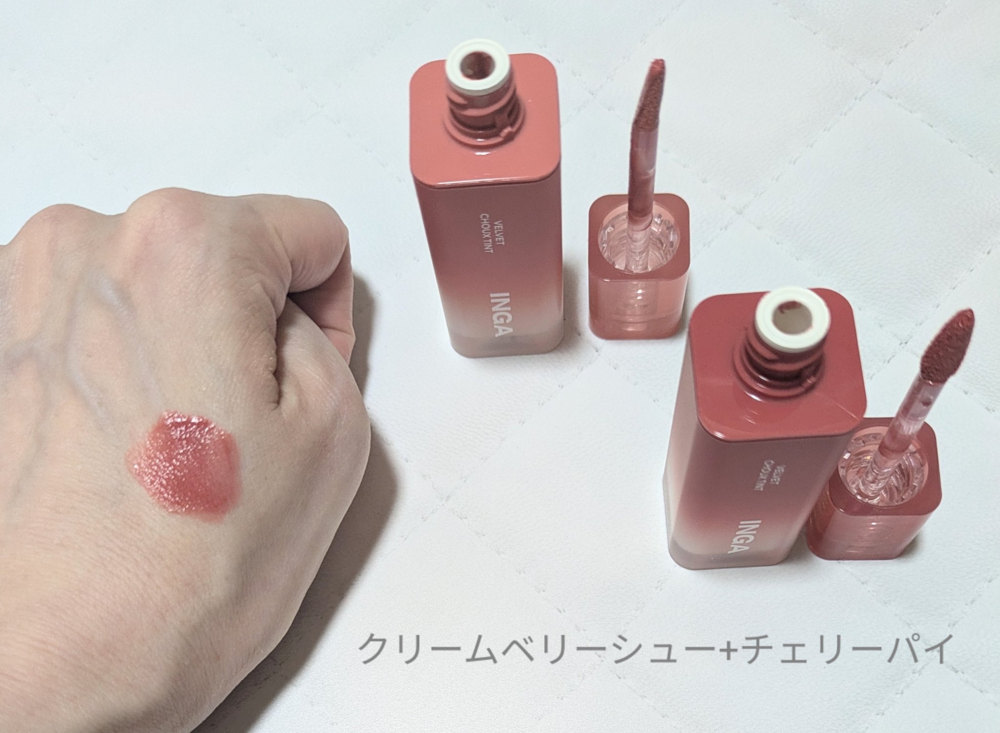 INGAベルベットシューティントクリームベリーシューチェリーパイ\ふんわり、グラデーションリップ/果実のシュークリームをのせたように、ふんわりと密着し、縦ジワの目立たないなめらかな唇に💋油分のないサラッとしたテクスチャーで唇にやさしく密着★ベ...