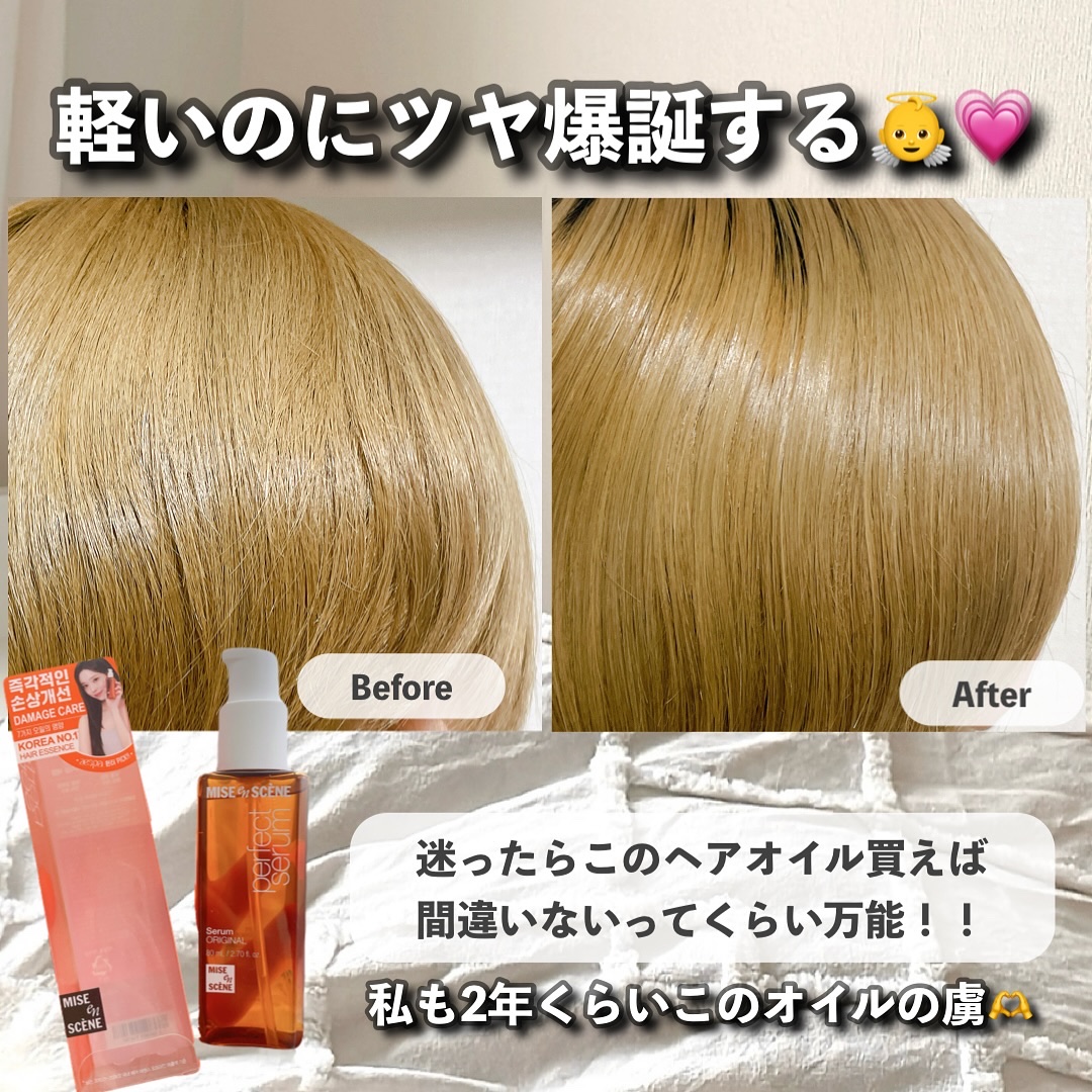 | ドライヤーで乾かすと サラサラしっとりのまとまった髪になって良い感じです💖さすが評価が高いだけあるヘアオイルです | 詳細を見る | ||
