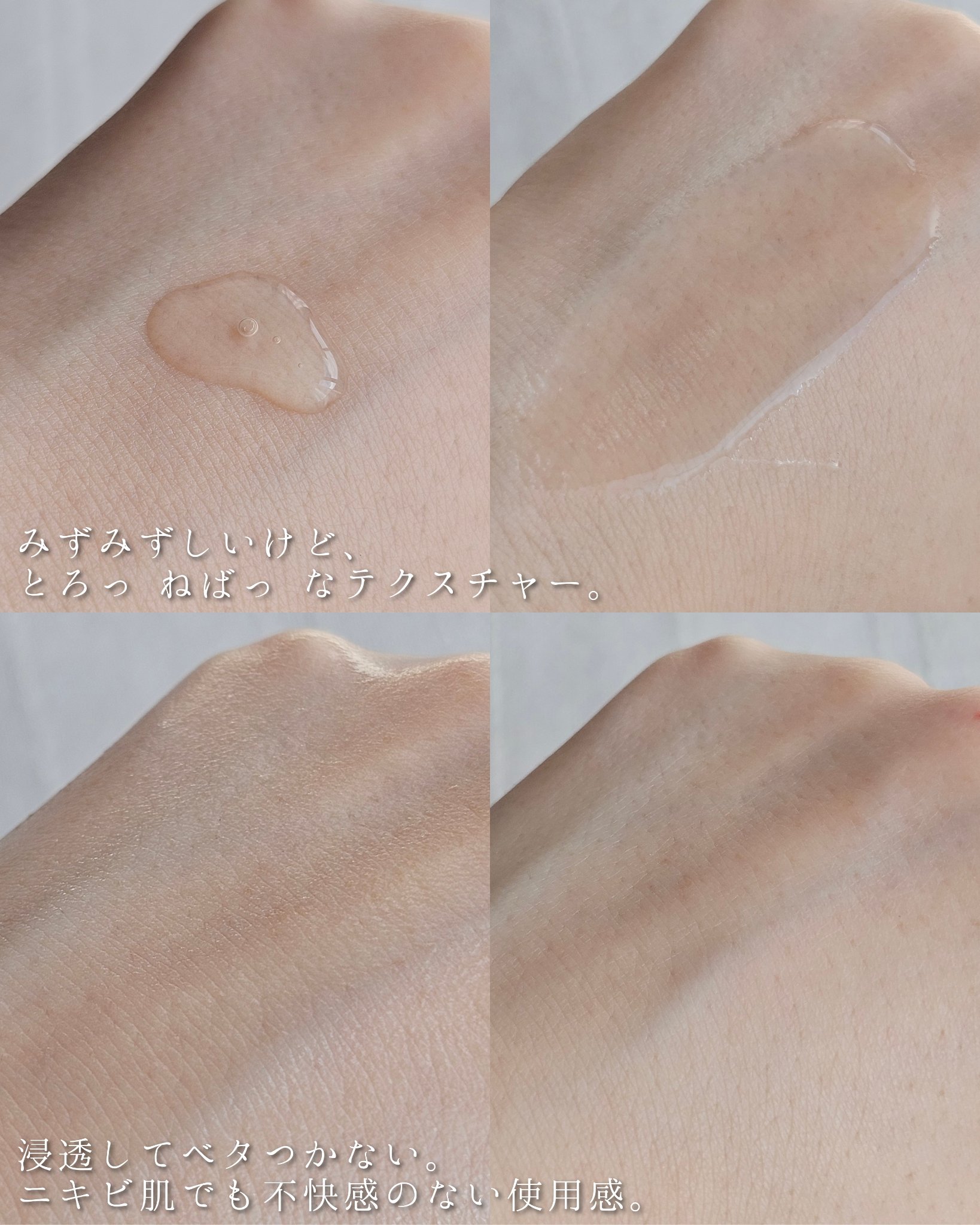 | テクスチャーはみずみずしく緩めなので伸びがかなり良いです。 | 詳細を見る |