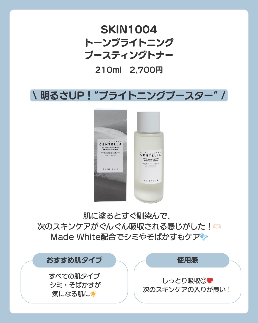 SKIN1004 センテラ トーニングトナー | 2,750円 |