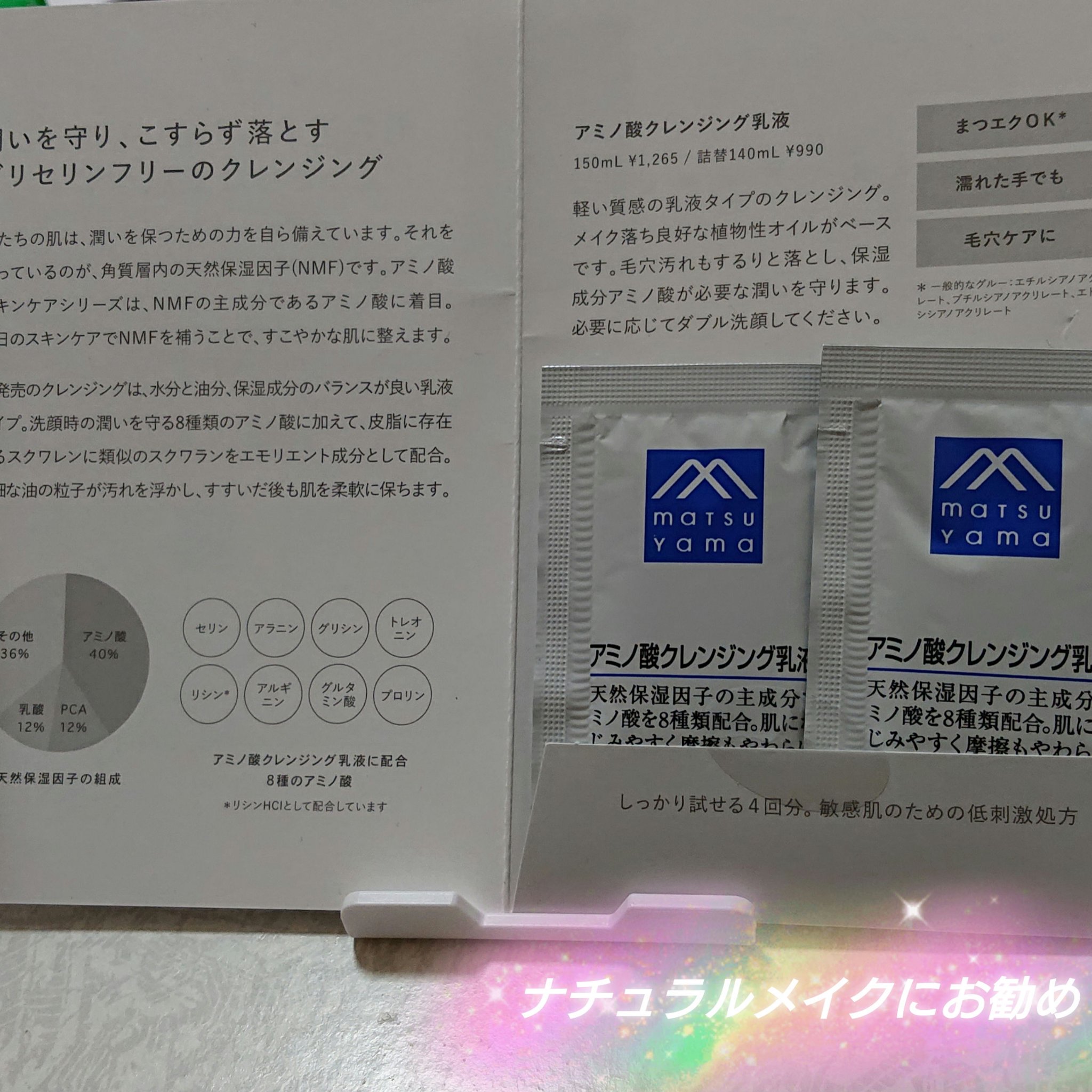 #肌荒れ予防計画肌荒れしてても使いやすい💗松山油脂Mマークシリーズアミノ酸クレンジング乳液乳液タイプのメイク落としなんだけど、クレンジングじゃなくて本当の乳液みたい😳とろみがあって、乳液みたいなテクスチャー🤍お肌への伸びもよくて、クッション性...