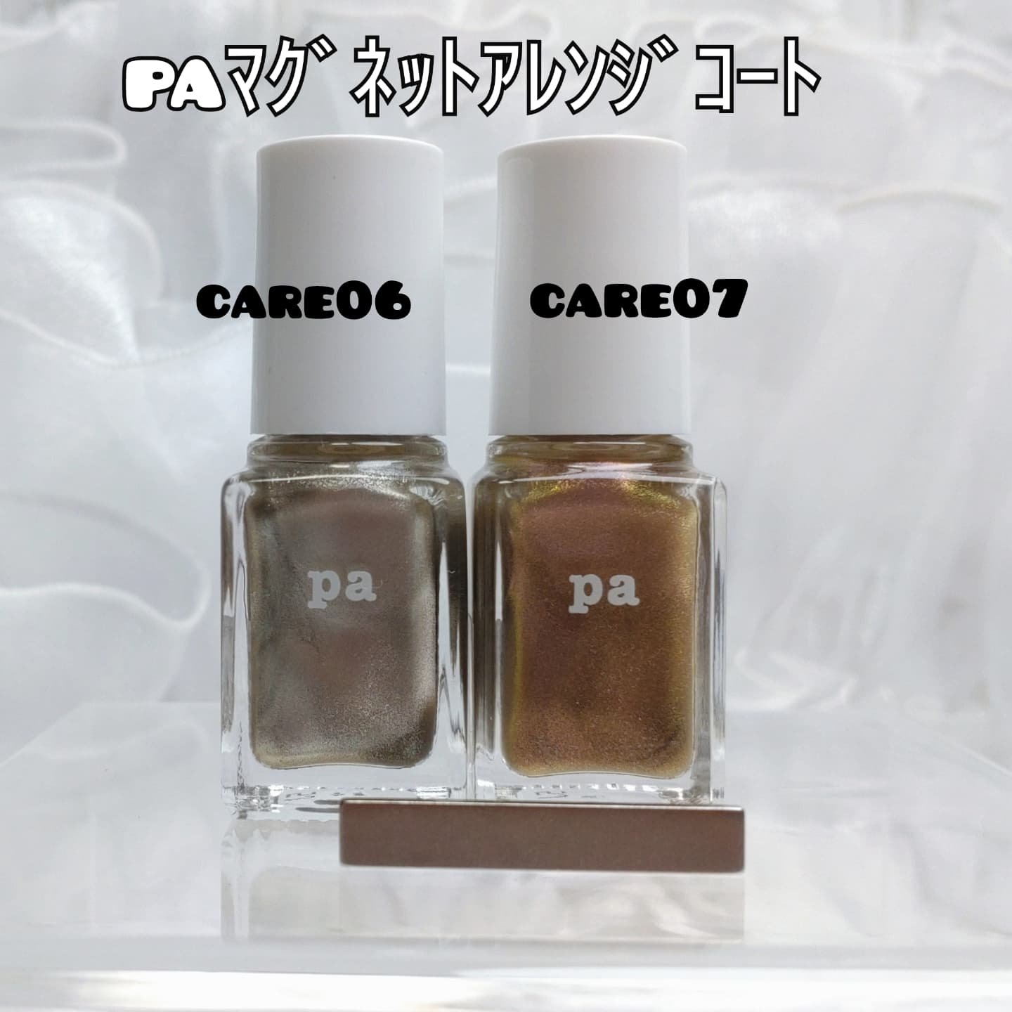 ポリッシュでマグネット🧲ネイルpaネイルさんよりいただいたものでマグネット🧲ってジェルのイメージ強いけどポリッシュでも楽しめちゃう🥳マグはシルバー系にしたけどカラーの上に重ねても可愛いし単色使いも全然あり🫶🏻カラーネイルは秋っぽいS073・S...