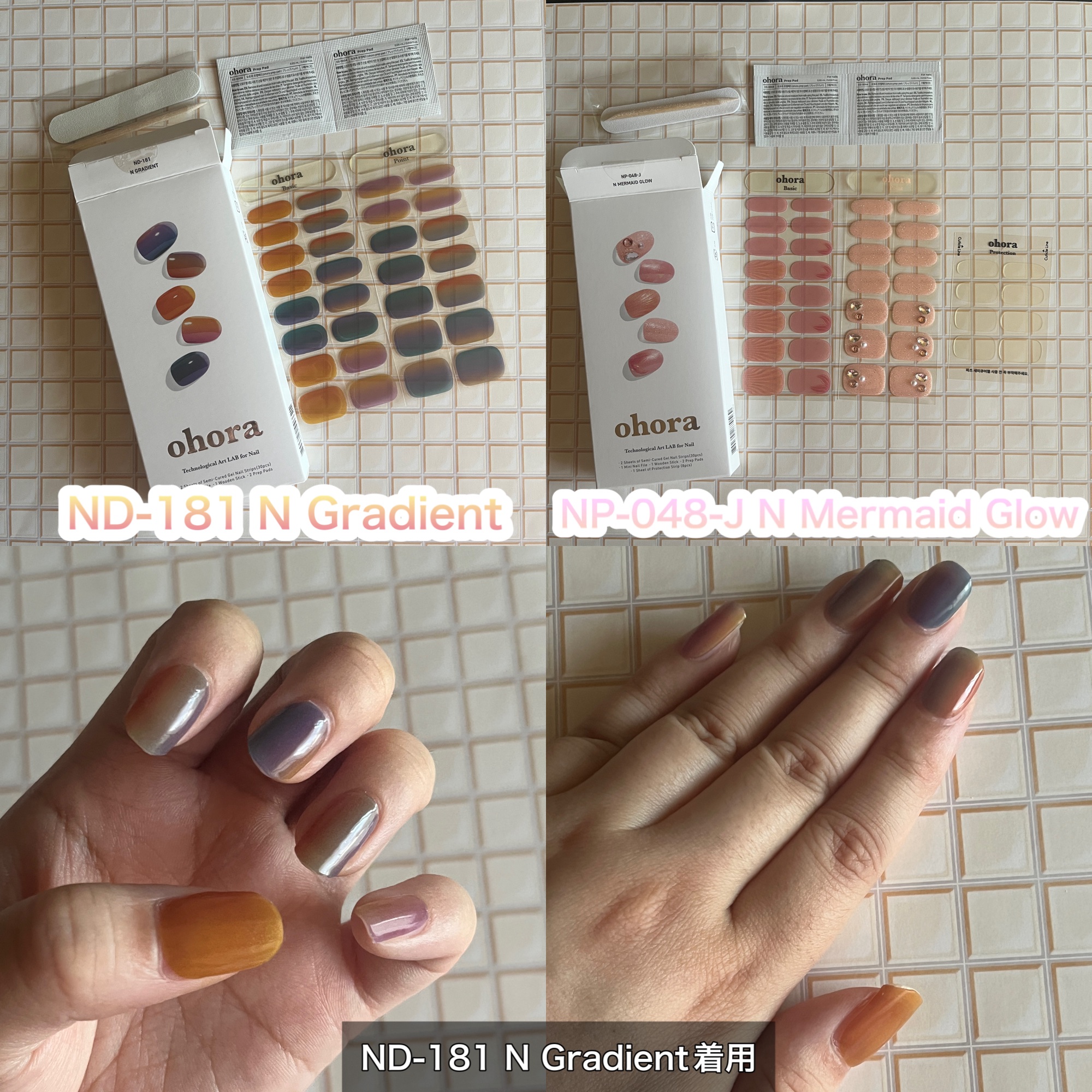 “セルフネイル耐久チャレンジ中!”貼るだけでサロン級ohoraネイルシールを継続使用中✨𓂃𓈒𓏸NP-048-JNMermaidGlow𓂃𓈒𓏸ND-181NGradientND-181NGradientをつけてみたよ!貼って硬化するだけで、セル...