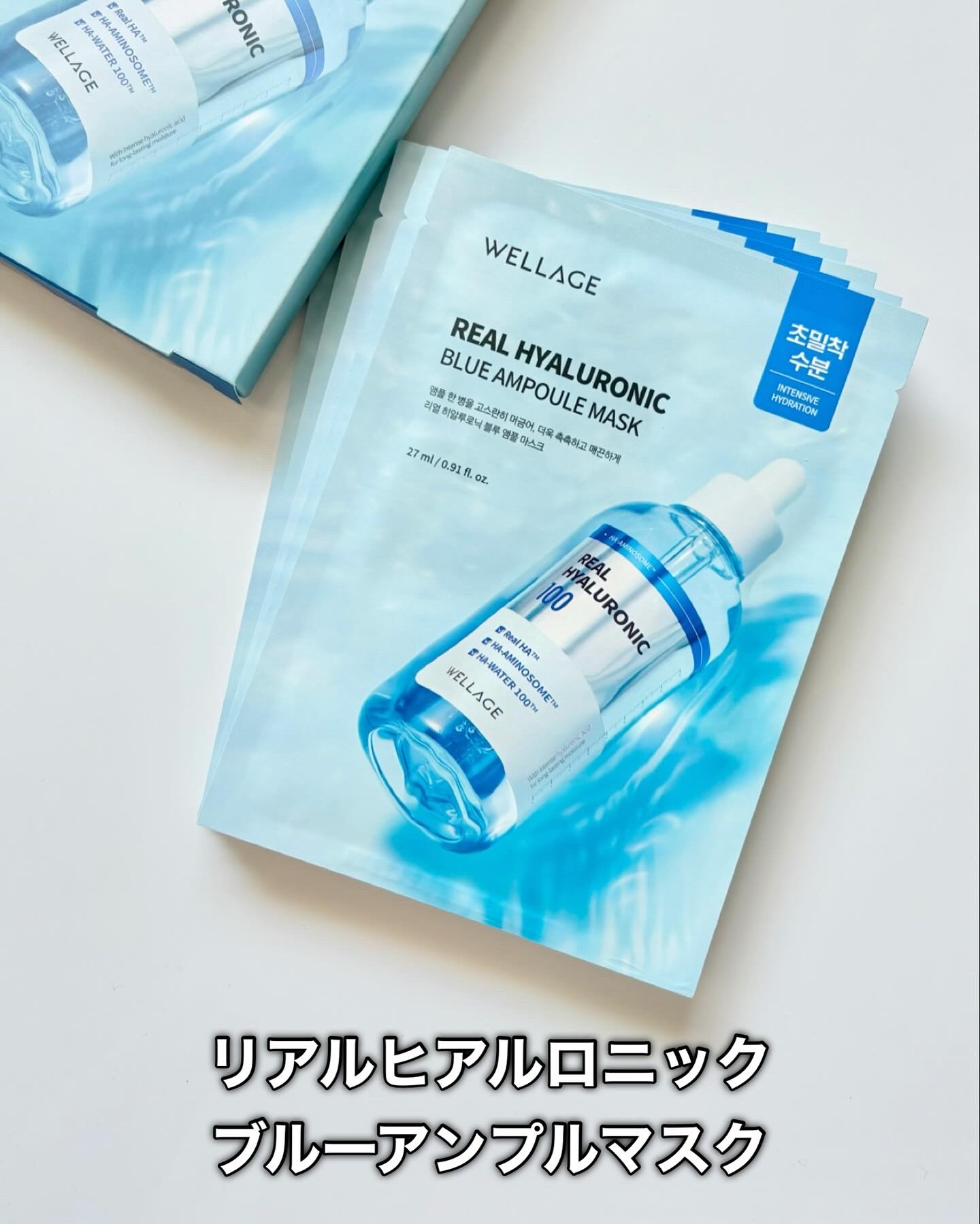 WELLAGE(ウェラージュ)リアルヒアルロニックブルー100アンプルリアルヒアルロニック100クリームリアルヒアルロニックブルーアンプルマスク使ってみたよ🩵🤍⋆⋆🤍💗リアルヒアルロニックブルー100アンプルオリーブヤング韓国No.1!2...