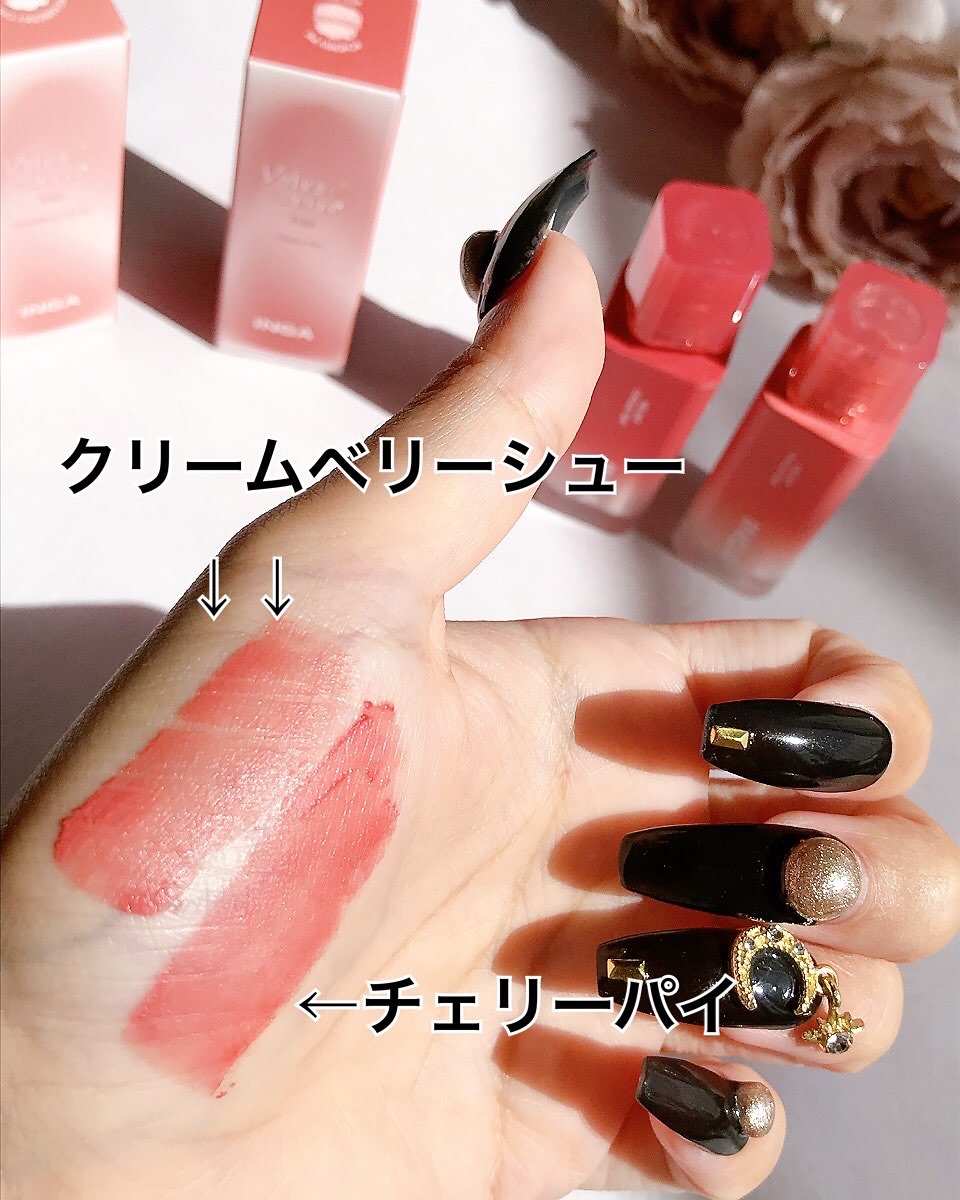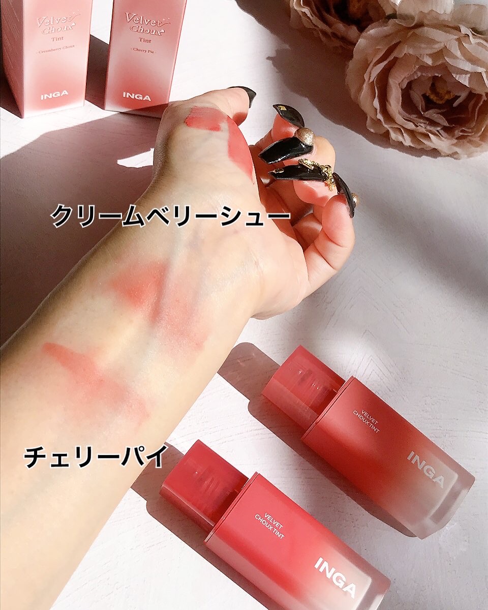 INGAベルベットシューティントニュートラルセット(クリームベリーシュー+チェリーパイ)の2色をお試ししたよ💄2in1✨チークとリップをこれ1本で叶えちゃう💞ベースカラーとポイントカラーを合わせてグラデーションリップが作れちゃう💞全部で6色あ...