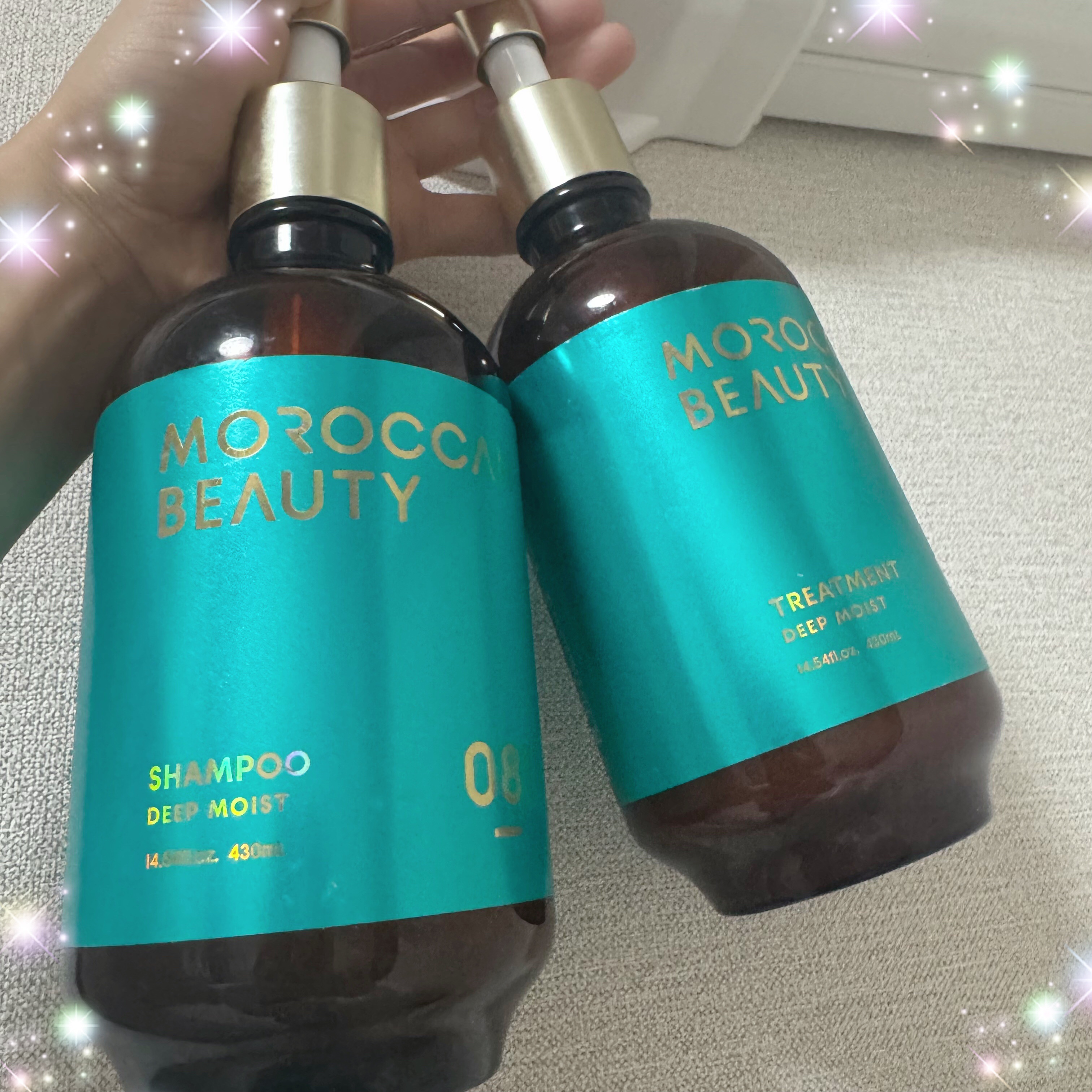 アットコスメさまのプレゼントにていただきましたモロッカンビューティディープモイストシャンプー/ヘアトリートメント熱、紫外線、カラー、乾燥などのダメージケアアイテム✨️【シャンプー】凄く泡立ちがよくて洗い流す時から髪がしっとりちゅるさら髪はしっ...