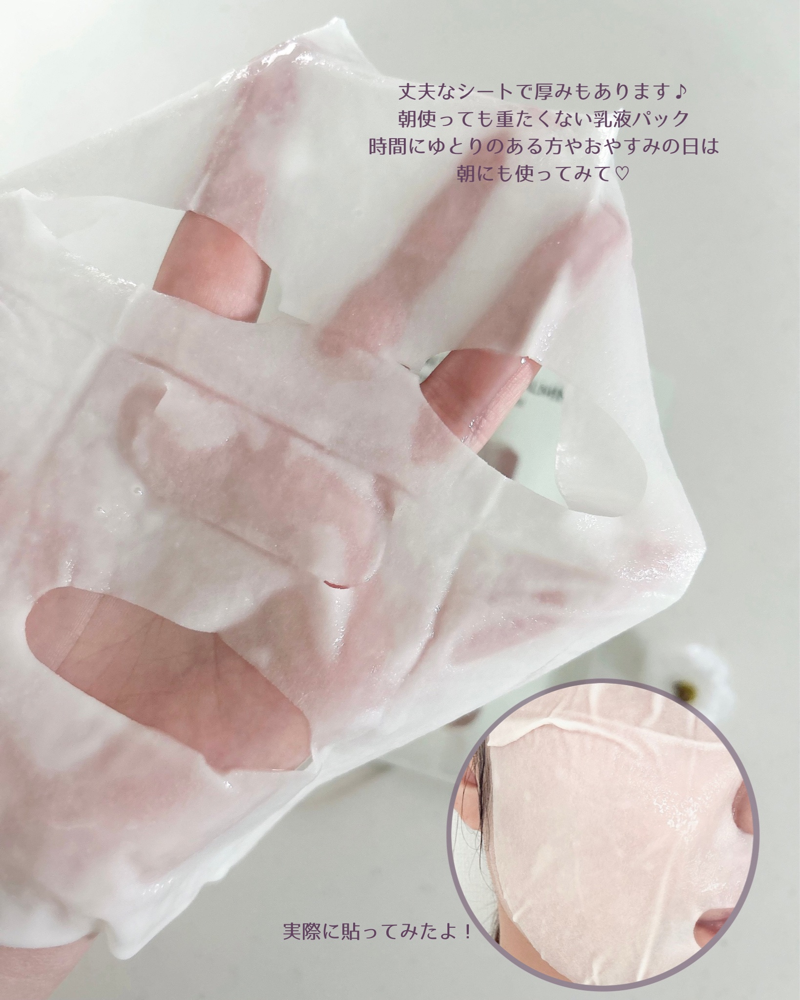 | 乳液とクリームの間のような美容液がたっぷり入った柔らかいシートマスク。外した後は肌がツヤツヤ✨ | 詳細を見る | |