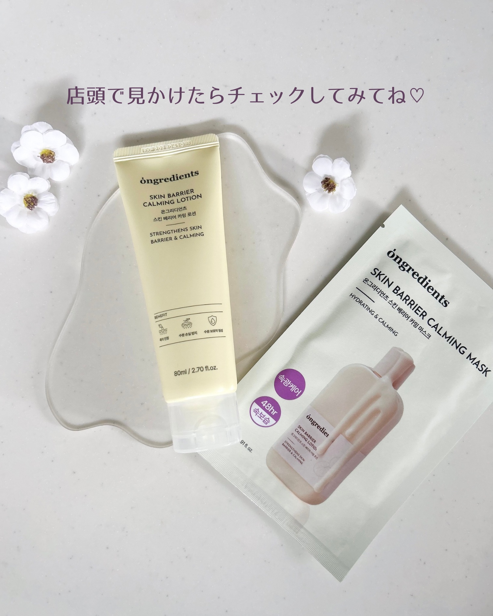 - 「ongredients(オングリディエンツ)」が、ついに日本のオフライン店舗に登場! <2025年8月30日(土)(※1)より全国のプラザ、ドン・キホーテ(※2)にて先行販売を開始> 【主要成分】 ・ツボクサ複合エキス(※3) 外的刺激を受けた肌を落ち着かせ、肌バリア(※4)機能を守ります。 ・複合ペプチド(※5) 肌のコンディションを整え、肌を水分で満たします。 ・植物由来シート ユーカリの木から抽出したシートで、肌にやさしくぴったりと密着します。 【こんな方におすすめ】 ・外的刺激を受けた肌を素早く落ち着かせたい方 ・水分感のあるツヤ肌をキープしたい方 ・やさしい使い心地のシートマスクをお探しの方 (※1)店頭開始日となり、購入可能日は各店舗により異なります。 (※2)一部店舗を除きます。 (※3)ツボクサエキス,マデカシン酸,マデカッソシド,アシアチコシド,アシアチン酸(整肌成分) (※4)角質層のうるおいを保つこと (※5)トリペプチド-1銅,トリペプチド-1,パルミトイルトリペプチド-1,パルミトイルペンタペプチド-4,ヘキサペプチド-11,ヘキサペプチド-9