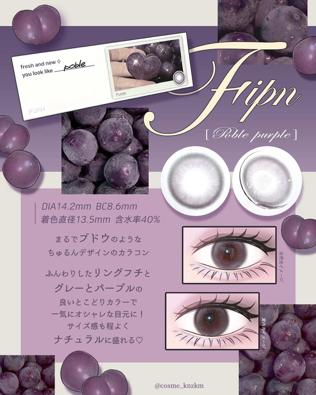 MYFiPN×ANNASUIParanticaVIOLET/ASH1month(1箱2枚入)DIA14.2mm/着色直径13.6mmBC8.7mm/含水率45%⸻💜VIOLET角度で変わる紫のニュアンス。🖤ASH澄んだグレートーンに、さりげな...
