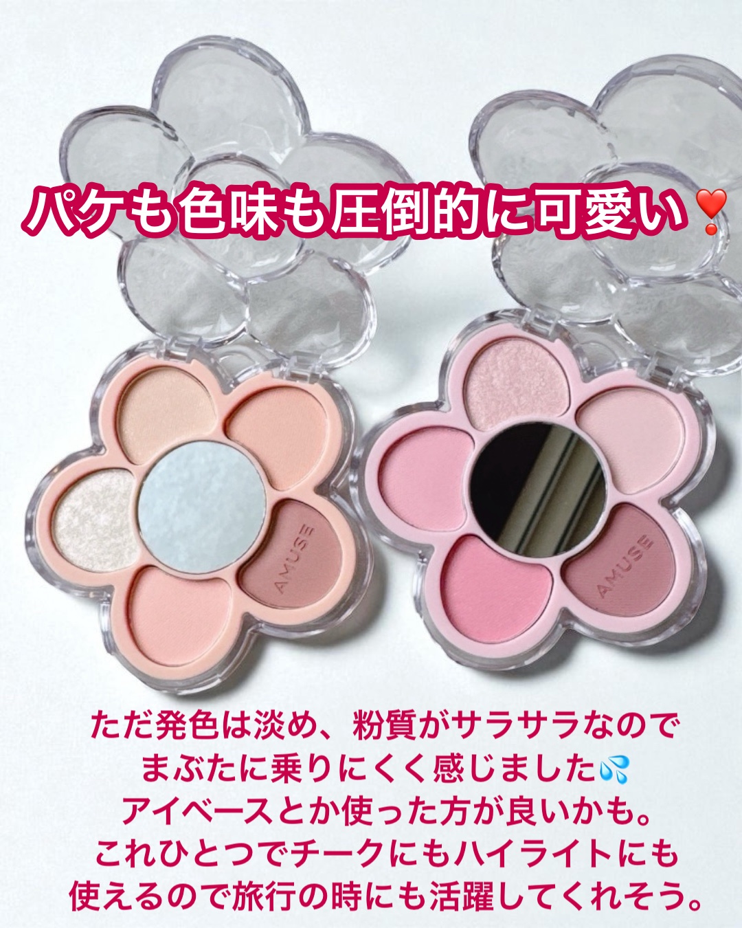 AMUSEさまから商品提供いただきました7月1日に発売されたばかりの新作🤍AMUSEフローラアイパレット🌸🌼可愛すぎる!マルチパレット🤍パケ買い不可欠パレット!アイシャドウ、ハイライト、チークとしても使えるマルチパレット🩷透明感ある発色が綺麗...