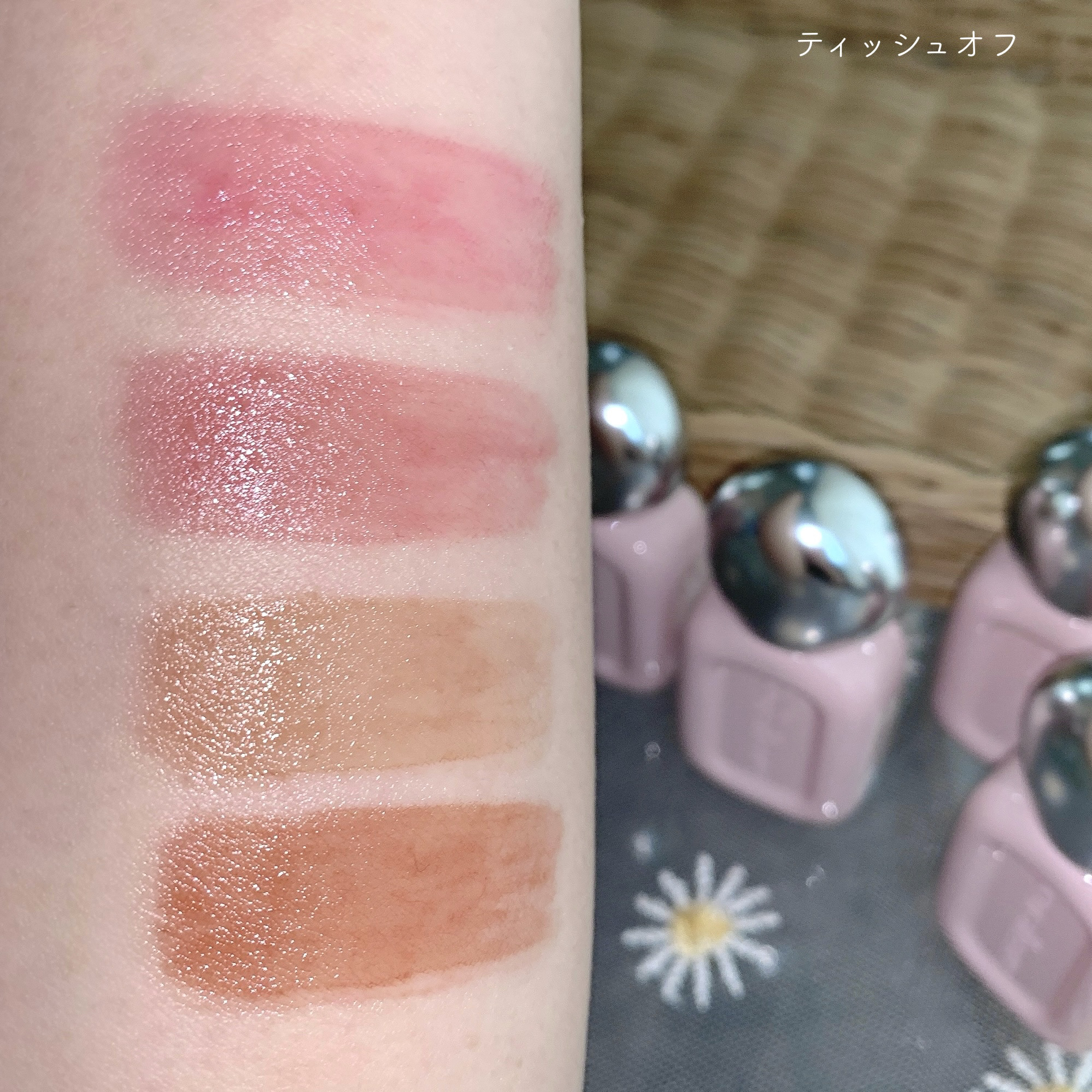 リップティントNよりもさらにむちっとぷるんと感が増していて本当に可愛い😭 そしてどのカラーも肌馴染みがよく透け感があるので、韓国のティントなどと比べてパーソナルカラーを気にせず使いやすい! 私の推しは303アプリコットベージュと304モーブ💗限定の401ソルベピンクは誰もが好きな美少女ピンクなので見かけたら即お迎え推奨です!
