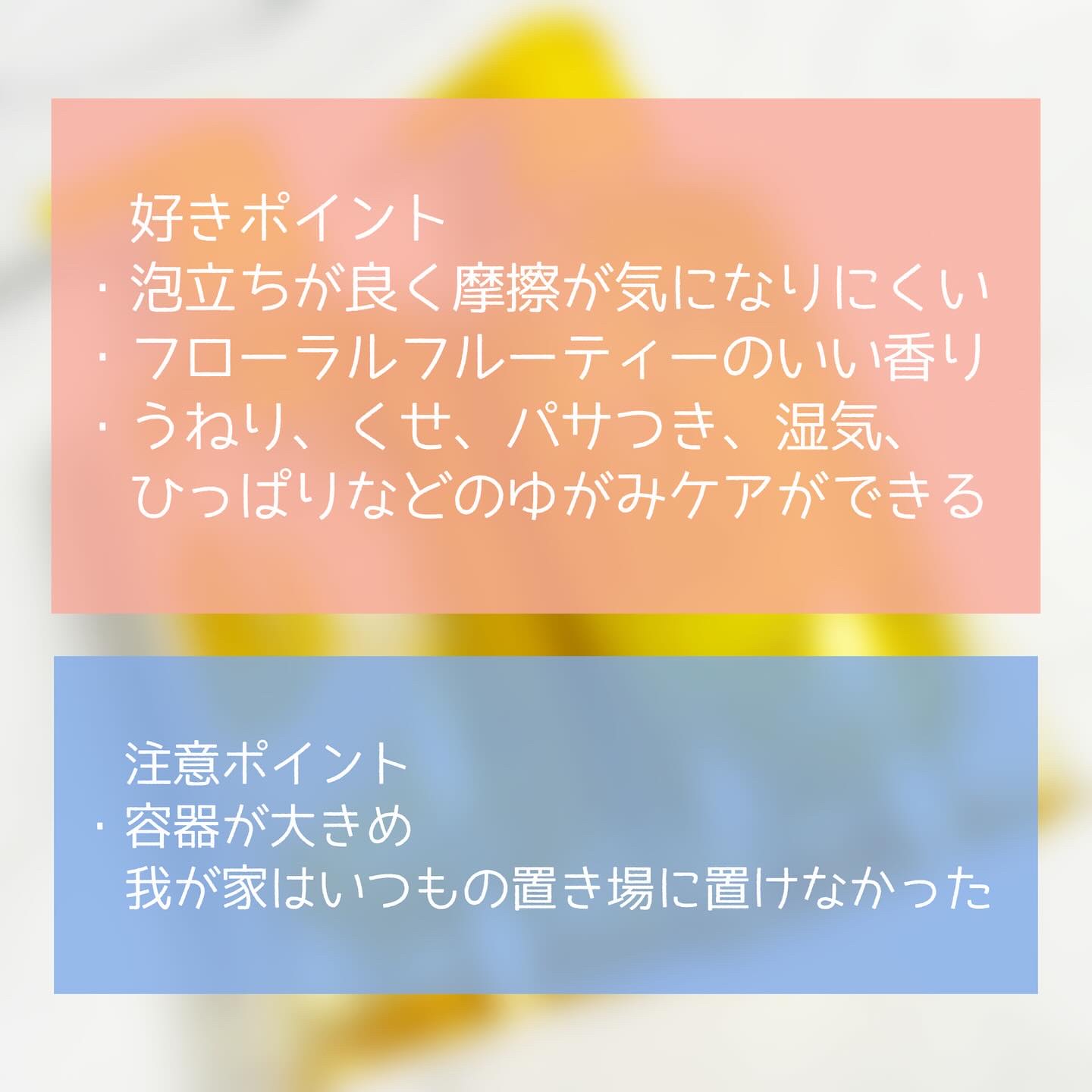 シャンプーは泡立ちが良く、洗いやすかった! 流した後のキシッとした感じもなくて◎ トリートメントをした後の指通りも良くて 使い心地はとても良かった!! 私は髪のパサつきが悩みなのですが、 洗い終わって1日過ごしてみると、 本当にパサつかず、しっとりした髪で過ごせました❤️ 香りはホワイトムスク&マグノリアの香り。 私はザ・お花!って感じがしました🌸 洗ってる時の香りは結構強めですが、 洗い流すと程よく香りが残ります♪ 9/18新発売とのことなので気になった方は ぜひチェックしてみてください!!