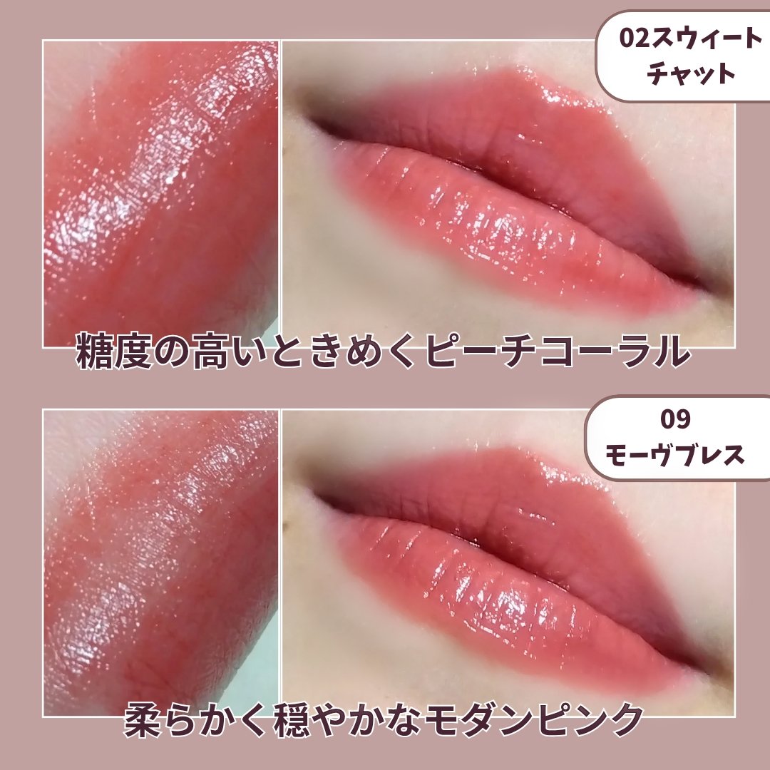 - <01 シャワーピーチ> リンゴ酸ジイソステアリル、オクチルドデカノール、トリ(カプリル酸/カプリン酸)グリセリル、トリメリト酸トリトリデシル、合成ワックス、ペンタイソステアリン酸ジペンタエリスリチル、ジイソステアリン酸ポリグリセリル-3、水添ポリイソブテン、マイクロクリスタリンワックス、ステアロイルオキシステアリン酸オクチルドデシル、酸化チタン、トリイソステアリン酸ポリグリセリル-2、シリカ、(VP/エイコセン)コポリマー、パラフィン、(ラズベリー種子油/コハク酸トコフェロール)アミノプロパンジオールエステルズ、イソステアリン酸ソルビタン、黄4、トリ酢酸テトラステアリン酸スクロース、(セバシン酸/イソパルミチン酸)ジグリセリル、酸化鉄、ポリヒドロキシステアリン酸、赤104(1)、ジステアルジモニウムヘクトライト、レシチン、赤202、ジイソステアリン酸ポリグリセリル-2、イソステアリン酸、パルミチン酸エチルヘキシル、ミリスチン酸イソプロピル、香料、青1、ポリリシノレイン酸ポリグリセリル-3、炭酸プロピレン、カプリリルグリコール、カプリル酸グリセリル、トコフェロール <02 スウィートチャット> リンゴ酸ジイソステアリル、オクチルドデカノール、トリ(カプリル酸/カプリン酸)グリセリル、トリメリト酸トリトリデシル、合成ワックス、ペンタイソステアリン酸ジペンタエリスリチル、ジイソステアリン酸ポリグリセリル-3、水添ポリイソブテン、マイクロクリスタリンワックス、ステアロイルオキシステアリン酸オクチルドデシル、酸化チタン、シリカ、トリイソステアリン酸ポリグリセリル-2、(VP/エイコセン)コポリマー、パラフィン、酸化鉄、(ラズベリー種子油/コハク酸トコフェロール)アミノプロパンジオールエステルズ、イソステアリン酸ソルビタン、トリ酢酸テトラステアリン酸スクロース、(セバシン酸/イソパルミチン酸)ジグリセリル、ポリヒドロキシステアリン酸、赤201、赤104(1)、ジステアルジモニウムヘクトライト、レシチン、赤202、ジイソステアリン酸ポリグリセリル-2、イソステアリン酸、パルミチン酸エチルヘキシル、ミリスチン酸イソプロピル、香料、ポリリシノレイン酸ポリグリセリル-3、炭酸プロピレン、カプリリルグリコール、カプリル酸グリセリル、トコフェロール <03 アップルフィズ> リンゴ酸ジイソステアリル、オクチルドデカノール、トリ(カプリル酸/カプリン酸)グリセリル、トリメリト酸トリトリデシル、トリイソステアリン酸ポリグリセリル-2、合成ワックス、ペンタイソステアリン酸ジペンタエリスリチル、ジイソステアリン酸ポリグリセリル-3、水添ポリイソブテン、マイクロクリスタリンワックス、ステアロイルオキシステアリン酸オクチルドデシル、シリカ、(VP/エイコセン)コポリマー、パラフィン、(ラズベリー種子油/コハク酸トコフェロール)アミノプロパンジオールエステルズ、赤104(1)、イソステアリン酸ソルビタン、トリ酢酸テトラステアリン酸スクロース、(セバシン酸/イソパルミチン酸)ジグリセリル、黄5、黄4、ジイソステアリン酸ポリグリセリル-2、ポリヒドロキシステアリン酸、赤202、赤201、ジステアルジモニウムヘクトライト、レシチン、イソステアリン酸、パルミチン酸エチルヘキシル、ミリスチン酸イソプロピル、香料、ポリリシノレイン酸ポリグリセリル-3、青1、炭酸プロピレン、カプリリルグリコール、カプリル酸グリセリル、トコフェロール <04 ヌードアーモンド> リンゴ酸ジイソステアリル、オクチルドデカノール、トリ(カプリル酸/カプリン酸)グリセリル、トリメリト酸トリトリデシル、合成ワックス、ペンタイソステアリン酸ジペンタエリスリチル、トリイソステアリン酸ポリグリセリル-2、ジイソステアリン酸ポリグリセリル-3、水添ポリイソブテン、マイクロクリスタリンワックス、ステアロイルオキシステアリン酸オクチルドデシル、シリカ、酸化鉄、(VP/エイコセン)コポリマー、パラフィン、(ラズベリー種子油/コハク酸トコフェロール)アミノプロパンジオールエステルズ、イソステアリン酸ソルビタン、トリ酢酸テトラステアリン酸スクロース、(セバシン酸/イソパルミチン酸)ジグリセリル、酸化チタン、ポリヒドロキシステアリン酸、赤202、ジステアルジモニウムヘクトライト、レシチン、ジイソステアリン酸ポリグリセリル-2、青1、イソステアリン酸、パルミチン酸エチルヘキシル、ミリスチン酸イソプロピル、香料、ポリリシノレイン酸ポリグリセリル-3、炭酸プロピレン、カプリリルグリコール、カプリル酸グリセリル、トコフェロール <05 ロージーナップ> リンゴ酸ジイソステアリル、オクチルドデカノール、トリ(カプリル酸/カプリン酸)グリセリル、トリメリト酸トリトリデシル、合成ワックス、ペンタイソステアリン酸ジペンタエリスリチル、ジイソステアリン酸ポリグリセリル-3、水添ポリイソブテン、マイクロクリスタリンワックス、ステアロイルオキシステアリン酸オクチ