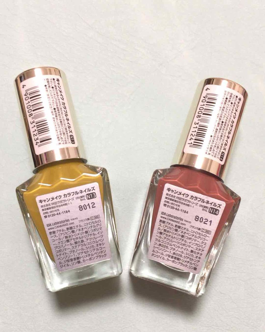 - <N02 シックボルドー> 酢酸ブチル、酢酸エチル、ニトロセルロース、(アジピン酸/ネオペンチルグリコール/無水トリメリト酸)コポリマー、クエン酸アセチルトリブチル、イソプロパノール、アクリレーツコポリマー、ステアラルコニウムベントナイト、酸化鉄、ブタノール、オキシベンゾン-1、シリカ、赤220、ジアセトンアルコール、酸化チタン、リン酸、カーボンブラック、ジ安息香酸トリメチルペンタンジイル、黄4、赤226 [旧]酢酸ブチル、酢酸エチル、ニトロセルロース、(アジピン酸/ネオペンチルグリコール/無水トリメリト酸)コポリマー、クエン酸アセチルトリブチル、イソプロパノール、アクリレーツコポリマー、ステアラルコニウムベントナイト、(スチレン/アクリレーツ)コポリマー、酸化鉄、ブタノール、シリカ、オキシベンゾン-1、赤220、ジアセトンアルコール、酸化チタン、ジ安息香酸トリメチルペンタンジイル、リン酸、カーボンブラック、黄4 <N08 ミスティモーヴ> 酢酸ブチル、酢酸エチル、ニトロセルロース、(アジピン酸/ネオペンチルグリコール/無水トリメリト酸)コポリマー、クエン酸アセチルトリブチル、イソプロパノール、アクリレーツコポリマー、ステアラルコニウムベントナイト、酸化チタン、ブタノール、シリカ、オキシベンゾン-1、マンガンバイオレット、ジアセトンアルコール、酸化鉄、赤226、リン酸、カオリン、ジ安息香酸トリメチルペンタンジイル、黄4 [旧] 酢酸ブチル、酢酸エチル、ニトロセルロース、(アジピン酸/ネオペンチルグリコール/無水トリメリト酸)コポリマー、クエン酸アセチルトリブチル、イソプロパノール、アクリレーツコポリマー、ステアラルコニウムベントナイト、(スチレン/アクリレーツ)コポリマー、酸化チタン、ブタノール、オキシベンゾン-1、シリカ、酸化鉄、ジアセトンアルコール、マンガンバイオレット、ジ安息香酸トリメチルペンタンジイル、リン酸、カーボンブラック、黄4 <N10 ペールラベンダー> 酢酸ブチル、酢酸エチル、ニトロセルロース、(アジピン酸/ネオペンチルグリコール/無水トリメリト酸)コポリマー、クエン酸アセチルトリブチル、イソプロパノール、アクリレーツコポリマー、ステアラルコニウムベントナイト、酸化チタン、ブタノール、酸化鉄、オキシベンゾン-1、シリカ、ジアセトンアルコール、マンガンバイオレット、リン酸、ジ安息香酸トリメチルペンタンジイル、黄4、赤226 [旧]酢酸ブチル、酢酸エチル、ニトロセルロース、(アジピン酸/ネオペンチルグリコール/無水トリメリト酸)コポリマー、クエン酸アセチルトリブチル、イソプロパノール、アクリレーツコポリマー、ステアラルコニウムベントナイト、酸化チタン、ブタノール、シリカ、オキシベンゾン-1、ジアセトンアルコール、酸化鉄、ジ安息香酸トリメチルペンタンジイル、マンガンバイオレット、リン酸、黄4 <N12 アーモンドグリーン> 酢酸ブチル、酢酸エチル、ニトロセルロース、(アジピン酸/ネオペンチルグリコール/無水トリメリト酸)コポリマー、クエン酸アセチルトリブチル、イソプロパノール、アクリレーツコポリマー、ステアラルコニウムベントナイト、(スチレン/アクリレーツ)コポリマー、酸化チタン、ブタノール、シリカ、オキシベンゾン-1、ジアセトンアルコール、ジ安息香酸トリメチルペンタンジイル、黄4、カーボンブラック、リン酸、コンジョウ <N16 ココア> 酢酸ブチル、酢酸エチル、ニトロセルロース、(アジピン酸/ネオペンチルグリコール/無水トリメリト酸)コポリマー、クエン酸アセチルトリブチル、イソプロパノール、酸化チタン、アクリレーツコポリマー、ステアラルコニウムベントナイト、酸化鉄、ブタノール、シリカ、オキシベンゾン-1、ジアセトンアルコール、黄4、リン酸、ジ安息香酸トリメチルペンタンジイル、カーボンブラック、赤226 [旧]酢酸ブチル、酢酸エチル、ニトロセルロース、(アジピン酸/ネオペンチルグリコール/無水トリメリト酸)コポリマー、クエン酸アセチルトリブチル、イソプロパノール、酸化チタン、アクリレーツコポリマー、ステアラルコニウムベントナイト、ブタノール、酸化鉄、シリカ、オキシベンゾン-1、ジアセトンアルコール、ジ安息香酸トリメチルペンタンジイル、黄4、リン酸、カーボンブラック <N17 クリームチャイ> 酢酸ブチル、酢酸エチル、ニトロセルロース、(アジピン酸/ネオペンチルグリコール/無水トリメリト酸)コポリマー、クエン酸アセチルトリブチル、イソプロパノール、アクリレーツコポリマー、ステアラルコニウムベントナイト、(スチレン/アクリレーツ)コポリマー、酸化チタン、ブタノール、シリカ、オキシベンゾン-1、ジアセトンアルコール、ジ安息香酸トリメチルペンタンジイル、酸化鉄、リン酸、黄4、カーボンブラック <N19 スウィートコーラル> 酢酸ブチル、酢酸エチル、ニトロセルロース、(アジピン酸/ネオペンチルグリコール/無水トリメリト酸)コポリマー、クエン酸アセチ