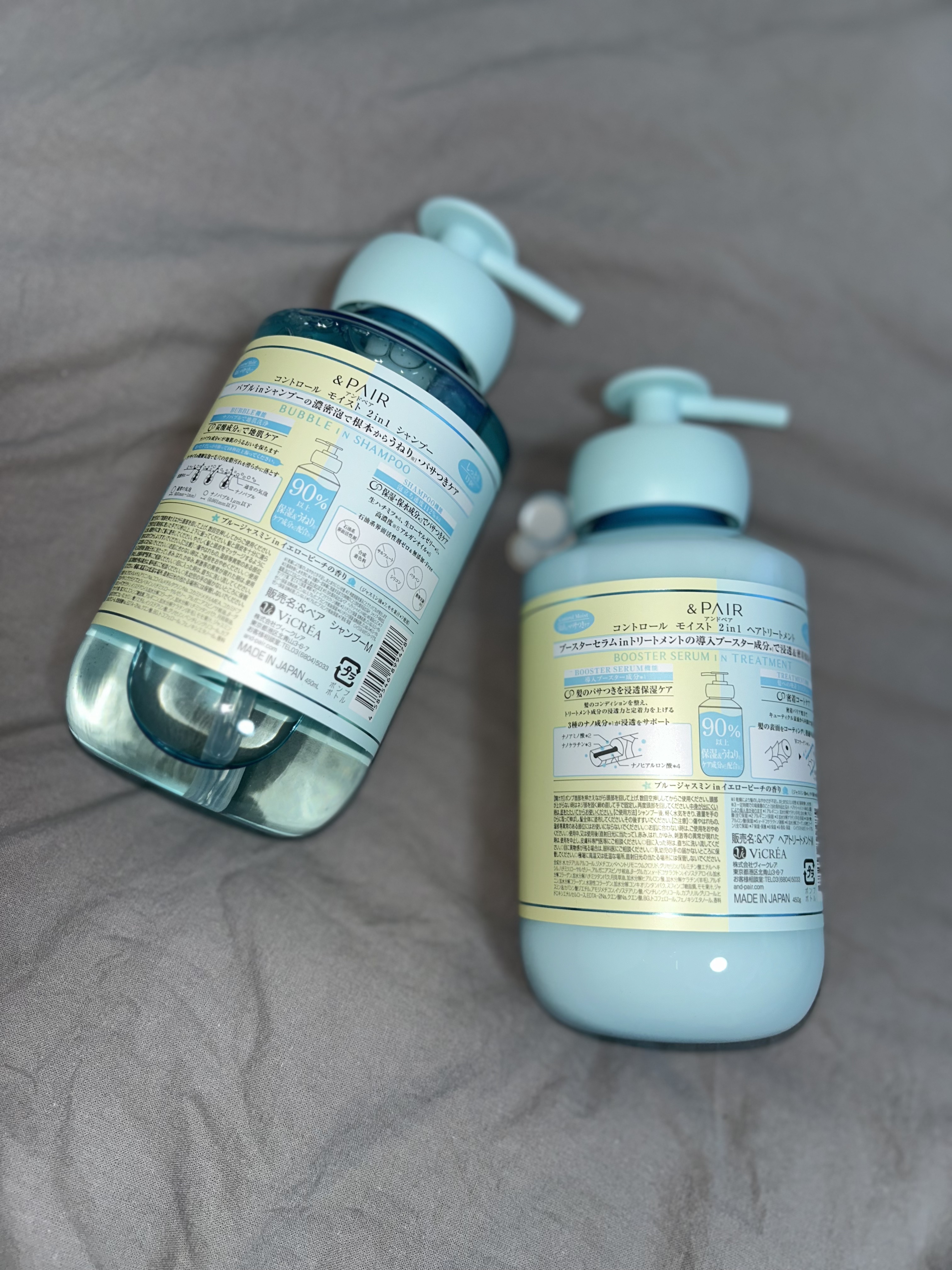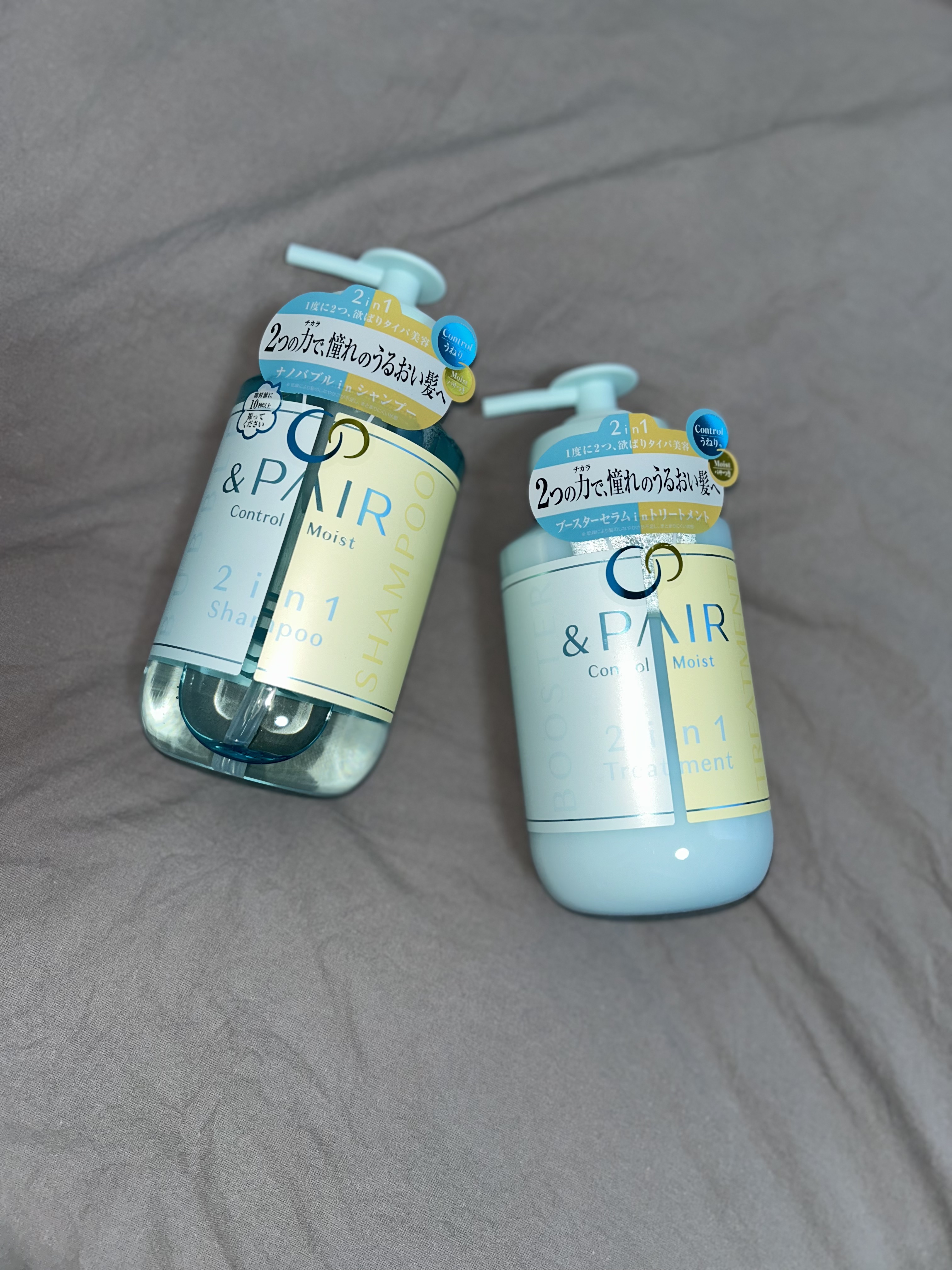 - &PAIRは「タイパ美容」に着目し、1本で2つの機能を持ち合わせたヘアケアブランドです。 コントロール モイストシリーズはうねり※1とパサつきを同時にケアし、しっとりな仕上がりに導きます。 シャンプーにはナノバブルパーツが採用されており、本体を振ることでナノバブルを発生させることができます。 ナノサイズの微細な泡で毛穴の皮脂汚れを滑らかに洗い流します。 ヘアトリートメントは導入ブースター成分*1で保湿成分の浸透をサポートし、 髪のパサつきに浸透保湿ケアができる導入ブースター機能のあるヘアトリートメント。 製品の90%以上が保湿&うねり※1ケア成分*2で構成し※2、指通り滑らかなしっとり髪へ導きます。 石油系洗浄成分不使用・パラベン不使用・動物実験不実施(製品として)・合成着色料不使用・サルフェート不使用(ラウレス硫酸Na)・鉱物油不使用 ※1 乾燥により髪のしなやかさが不足し、まとまりにくい状態 ※2 基剤を除く、水を含む *1 アルギニン、加水分解ケラチン(羊毛)、加水分解ヒアルロン酸(全て保湿) *2 γードコサラクトン(補修)