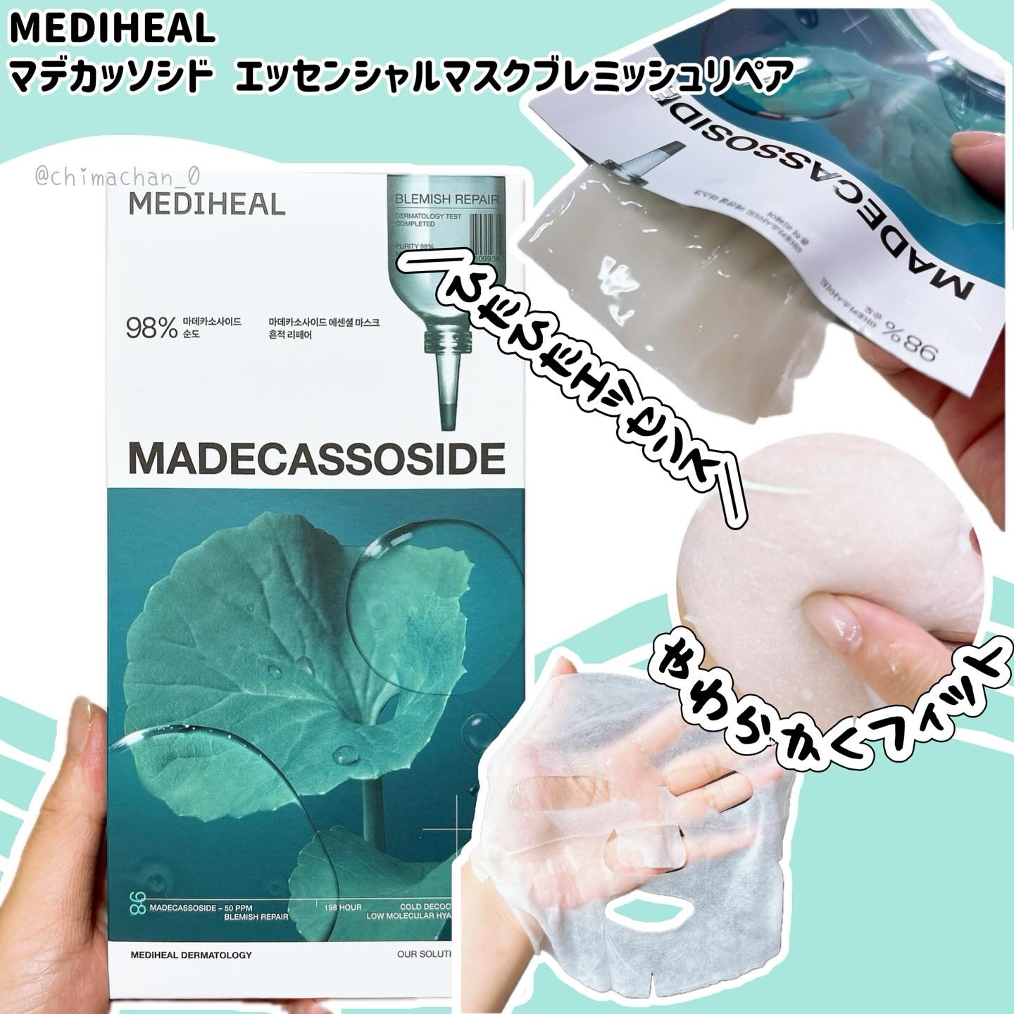 MEDIHEAL14年連続韓国オリーブヤングマスクパック部門売上No.1!累計販売数31億枚突破の大人気シートマスクシリーズマデカッソシドエッセンシャルマスクブレミッシュリペアリニューアルでパワーアップ💪ゆらぎ肌・乾燥ケアに純度98%ツボクサ...