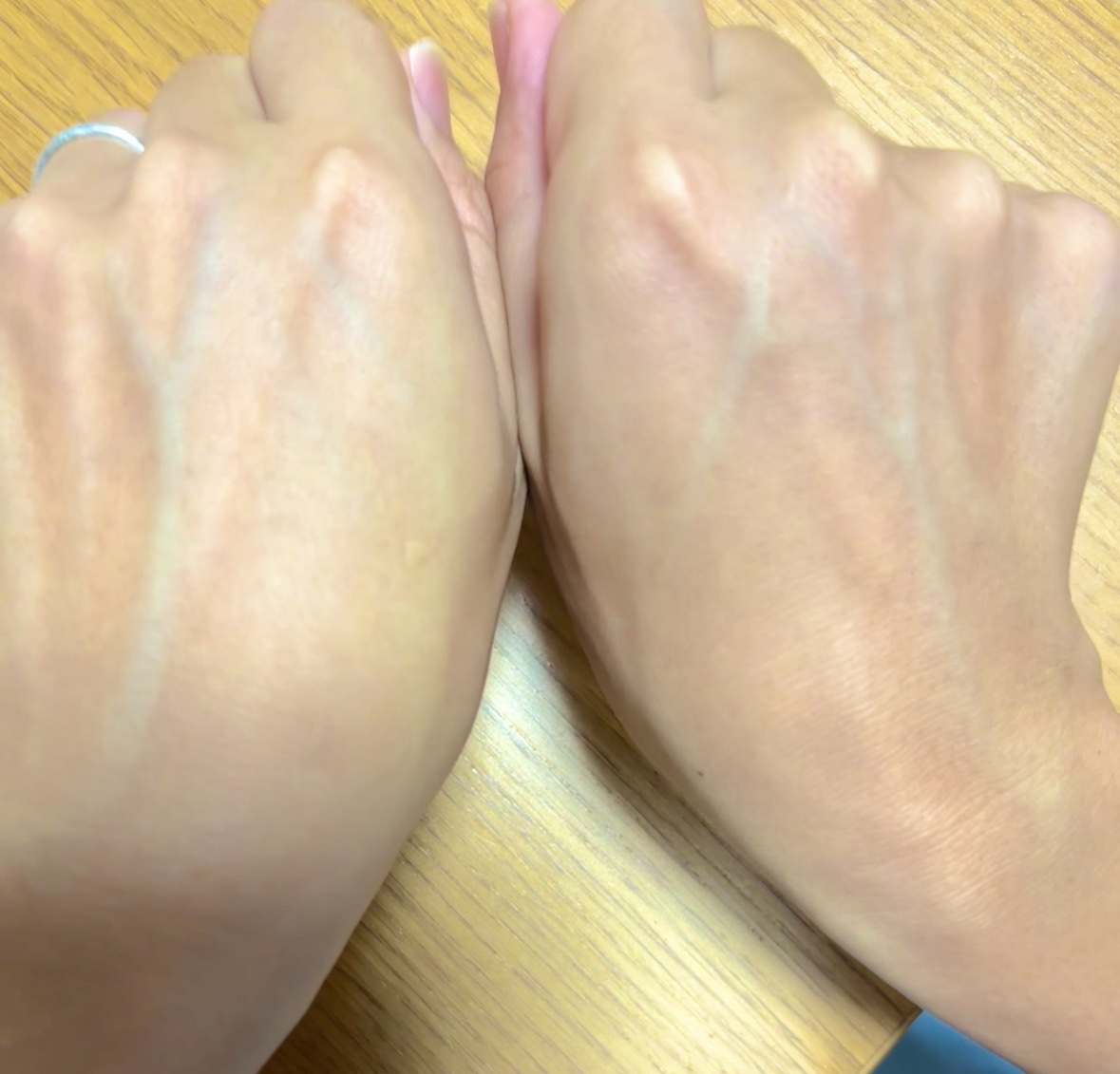 写真では左の手の甲にこちらの商品を塗ってから化粧水、右は化粧水のみで5分ほどおいてからの写真です。なんとなく左の方がツヤが出ている気がします😊【使った商品】PDRNキューブミドルショット2000セラム30ml【商品の特徴】針美容液で毛穴の約1...