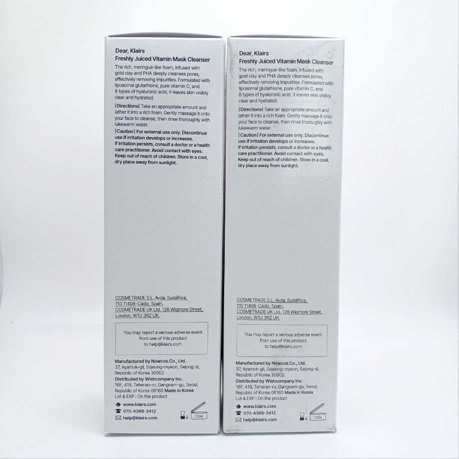 dear,klairsフレッシュリージューストビタミンマスククレンザー150mLです。パッケージ記載:2-in-1MaskCleanser、Refresh&Purify、GoldClay・PHA・PureVitaminC・Glutathion...