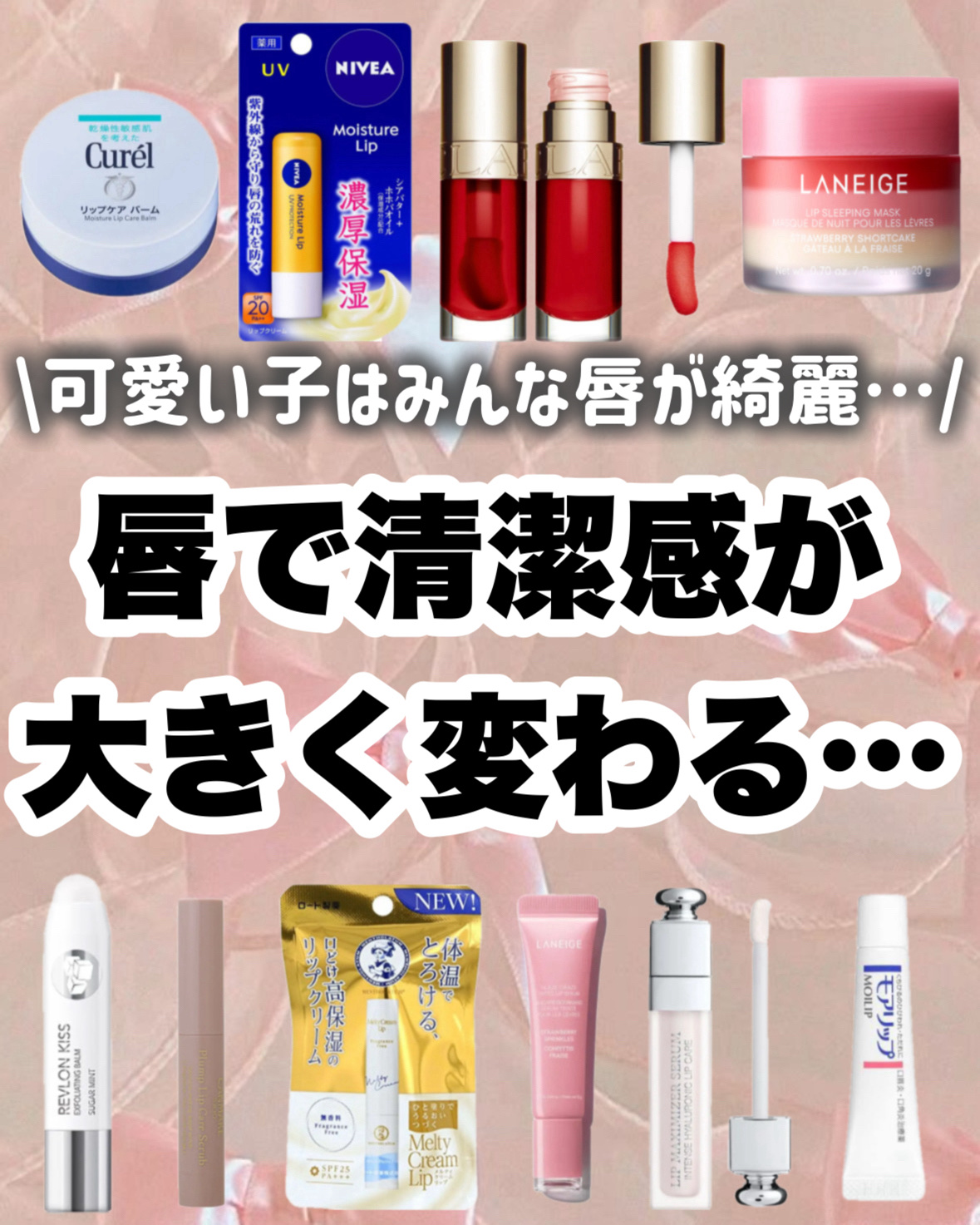 すぐ皮むけしたり縦じわ酷い方なんだけどこの4つを使い分けしてから乾燥もしなくなったしリップメイクも綺麗に仕上がるからリップケアってほんとに大事!! 私の愛用リップぜひチェックしてみてね~♡♡