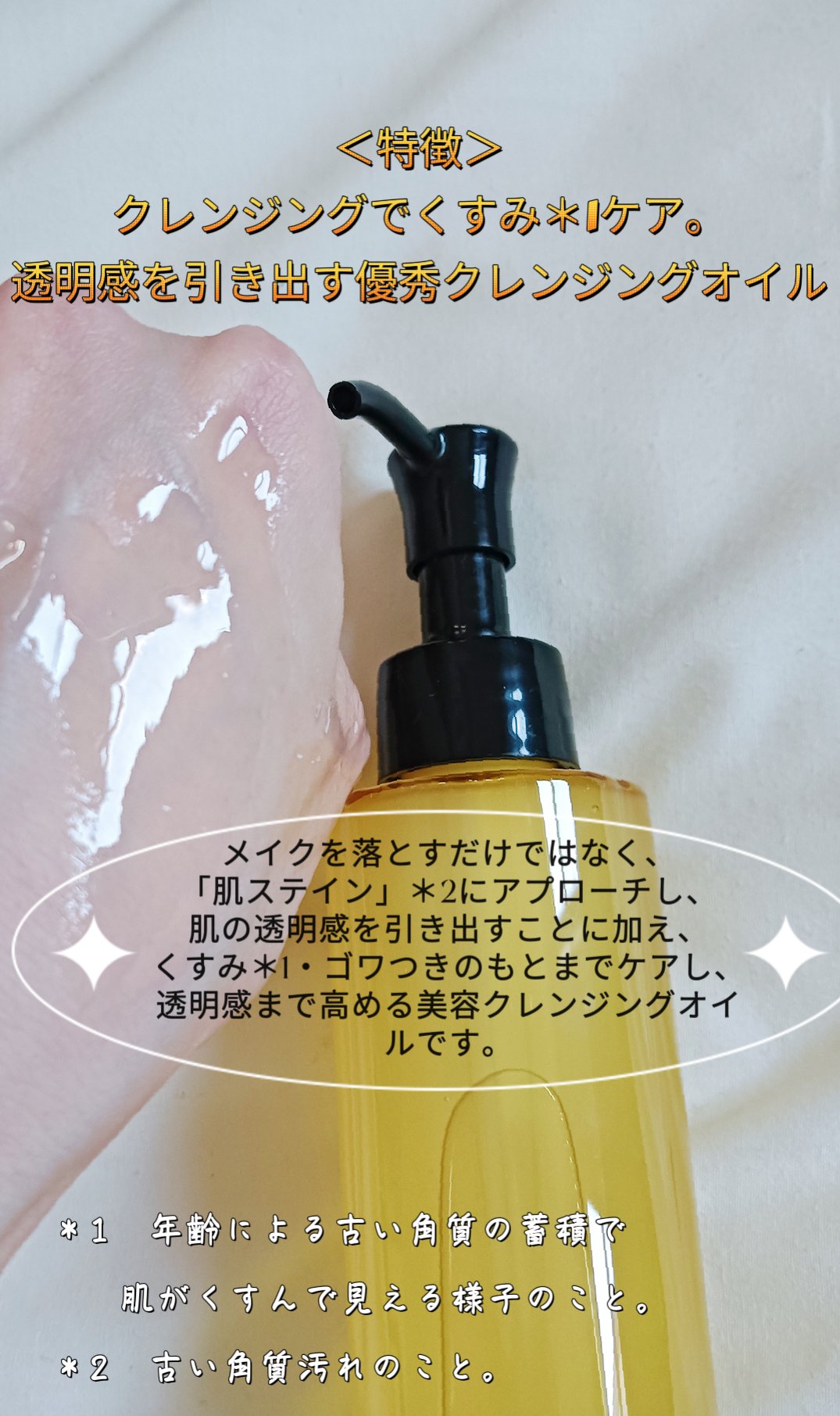 - リニューアル発売 酸化ステイン*に働くロックローズオイル・イモーテルオイル、肌状態を整えるバオバブオイル・アルガンオイル、くすみの新たな原因である糖化ステイン*に働きかける珊瑚草オイルの5つの厳選高級美容オイルが、総合的にケアするオイルクレンジング。リラクシングアロマの香り。*肌表面の古い角質や汚れ
