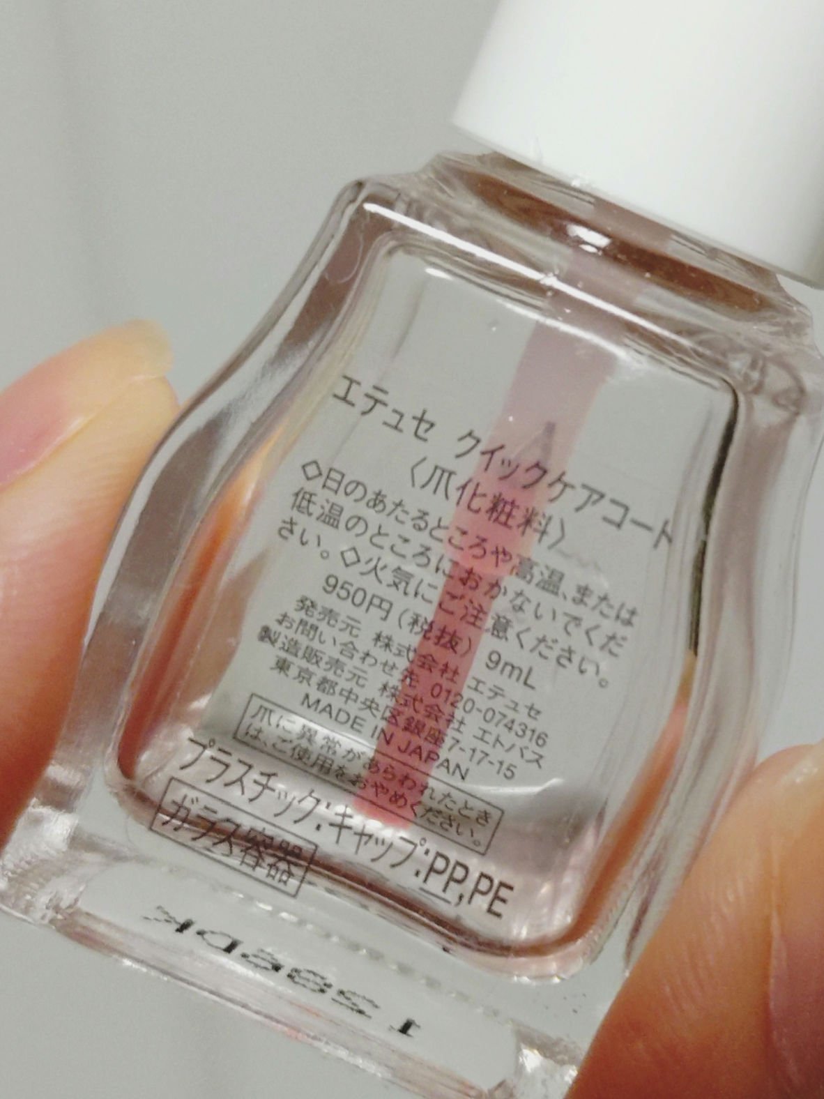 - 素爪でいるより、爪にいい。速乾!リムーバーいらず!透明薄膜ヴェールで爪を保護&ケアする、ツヤ出しネール用美容液。 弱い爪を摩擦や乾燥から保護し、爪のカケ・割れ・二枚爪・乾燥を防ぎます。 塗布すると、エッセンスコート成分が均一な薄膜をつくり、ナチュラル光沢成分&植物オイル(*)が自然なツヤを与えます。 ほんのりピンク色で、爪磨きしたようなナチュラルなツヤ仕上げです。 トルエンフリー、無香料で爪へのやさしさを配慮。 通常のトップコートやハードナーは、一部はがれると、厚みがあるため、凹凸になりますが、「クイックケアコート」は、厚みのない薄膜仕上げなので、落とさず、上から塗布してもキレイになじむので、リムーバーいらずです。 *ホホバ油・ローズヒップ油・マカデミアナッツ油 <こんな時におすすめ> ・爪を保護しながらツヤも出るので、マニキュアをお休みしたい時に ・超速乾だからササッと簡単にケアしたい時に ・ナチュラルなツヤ、仕事上ネールNGでもキレイに見せたい時に 【価格改定について】 いつもご愛用いただきありがとうございます。 この度、原材料高騰などにより、2025年9月1日より、希望小売価格の変更を行うこととなりました。 何卒ご理解を賜わりますよう、心よりお願い申し上げます。 エテュセ クイックケアコート 旧価格 税込1,045円(税抜950円) ↓ 新価格 税込1,265円(税抜1,150円)