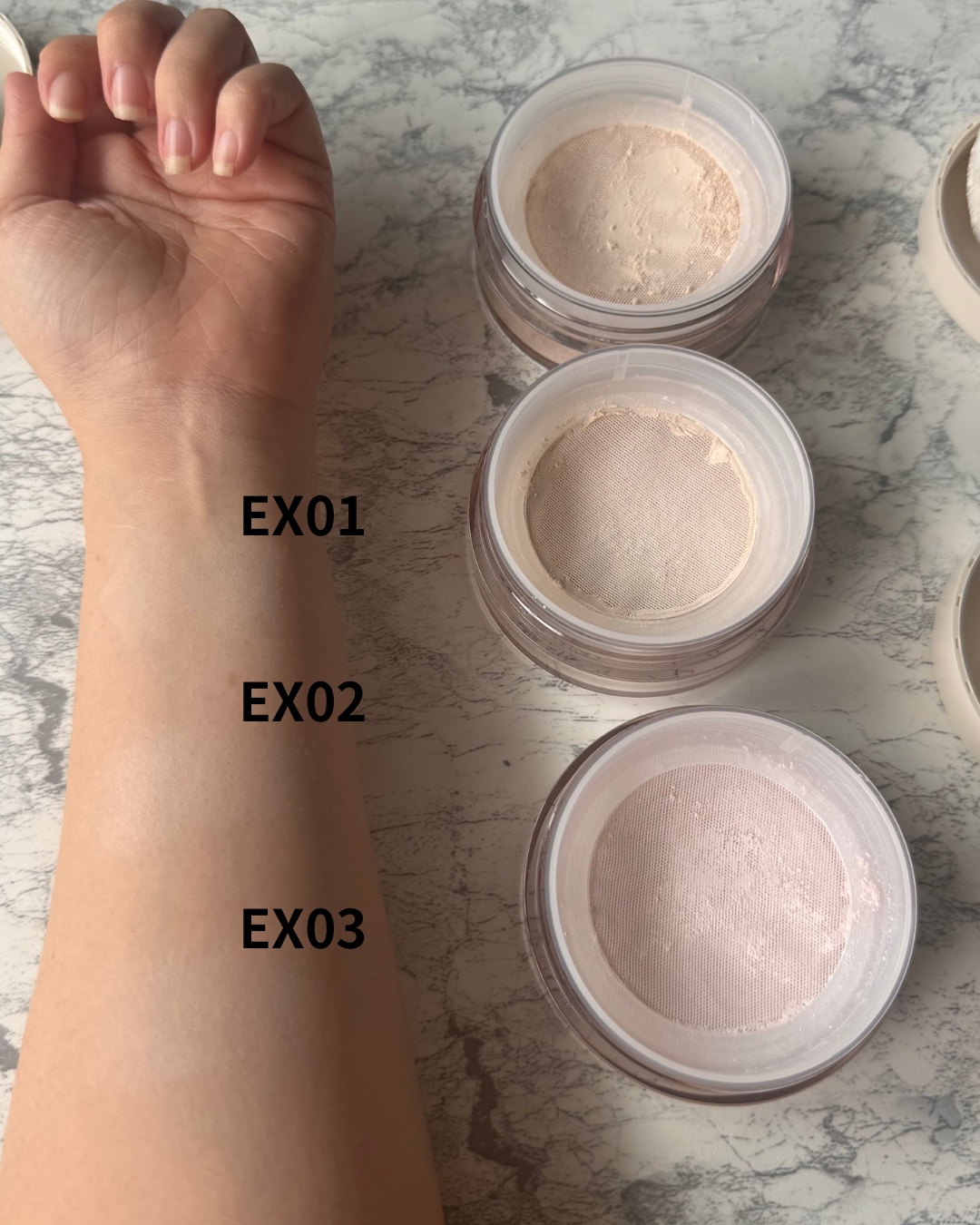 - 触れた瞬間お肌に溶け込むようにとろけて、贅沢うるふわ肌へ 美容液で包み込む、プレミアムなスキンケアパウダー 1. しっとりとお肌に溶け込むように馴染む、美肌パウダー設計。 上質な肌ざわりを叶えます。 ・メルティレア処方(NEW) お肌の上でとろけるようなパウダーで、なめらかでやわらかい仕上がりに。 ・アミノ酸コーティング処方 ベースとなるパウダーをアミノ酸*1でコーティング。お肌にしっとりと密着し、贅沢うるふわ肌に仕上げます。 ・セラミド内包パウダー*2 お肌のうるおいバリアをサポートし、乾燥から守ります。 2. お肌をケアするこだわりの 20 種の美容液成分(保湿)を贅沢配合。 3. 毛穴やお肌の凹凸をカバー。 乾燥・くずれを防いで、透明感*3あふれるようなつけたての美しい仕上がりが続きます。 <EX01 シルキーベージュ> やわらかなセミマット肌に。ピンクパール配合。 <EX02 グロウベージュ> 明るく華やかな印象のツヤ肌に。 7色(ピンク、パープル、ブルー、グリーン、オレンジ、 ゴールド、シルバー)の微細パール配合。 <EX03 シマーピンク> ほんのり血色感をもたらすツヤ肌に。 ピンク&パープルパール配合。 *1 ジラウロイルグルタミン酸リシンNa(保湿) *2 コメヌカスフィンゴ糖脂質、コメヌカ油、シクロデキストリン(すべて保湿) *3 メイクアップ効果 <EX01 シルキーベージュ,EX02 グロウベージュ,EX03 シマーピンク> ◆2025年8月29日からロフト及びプラザ、9月2日よりエクセル公式オンラインショップにて先行販売