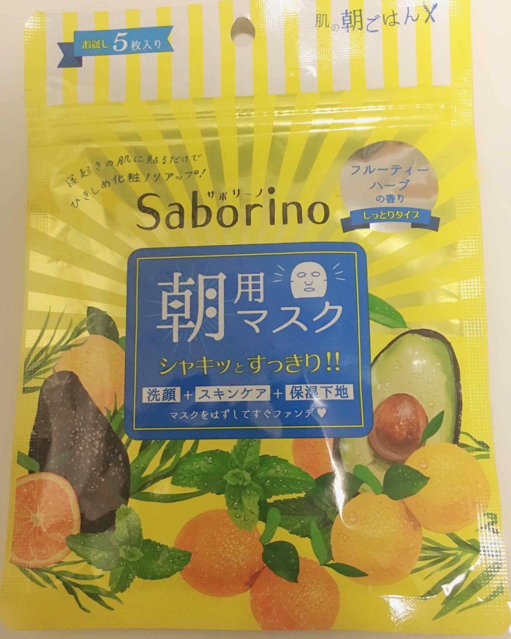 - シートマスク1枚で洗顔+スキンケア+保湿下地が完了! 寝起きの肌にそのまま貼るだけで、洗顔、スキンケア、保湿下地までできる朝用のオールインワンマスクです。 保湿成分をしっかり配合しながら、程よいメントール感で、寝起きの肌をすっきり引き締めます。 グレープフルーツ果皮エキス、オレンジ油 &アボカドエキスinのしっとりタイプ フルーティハーブの香り