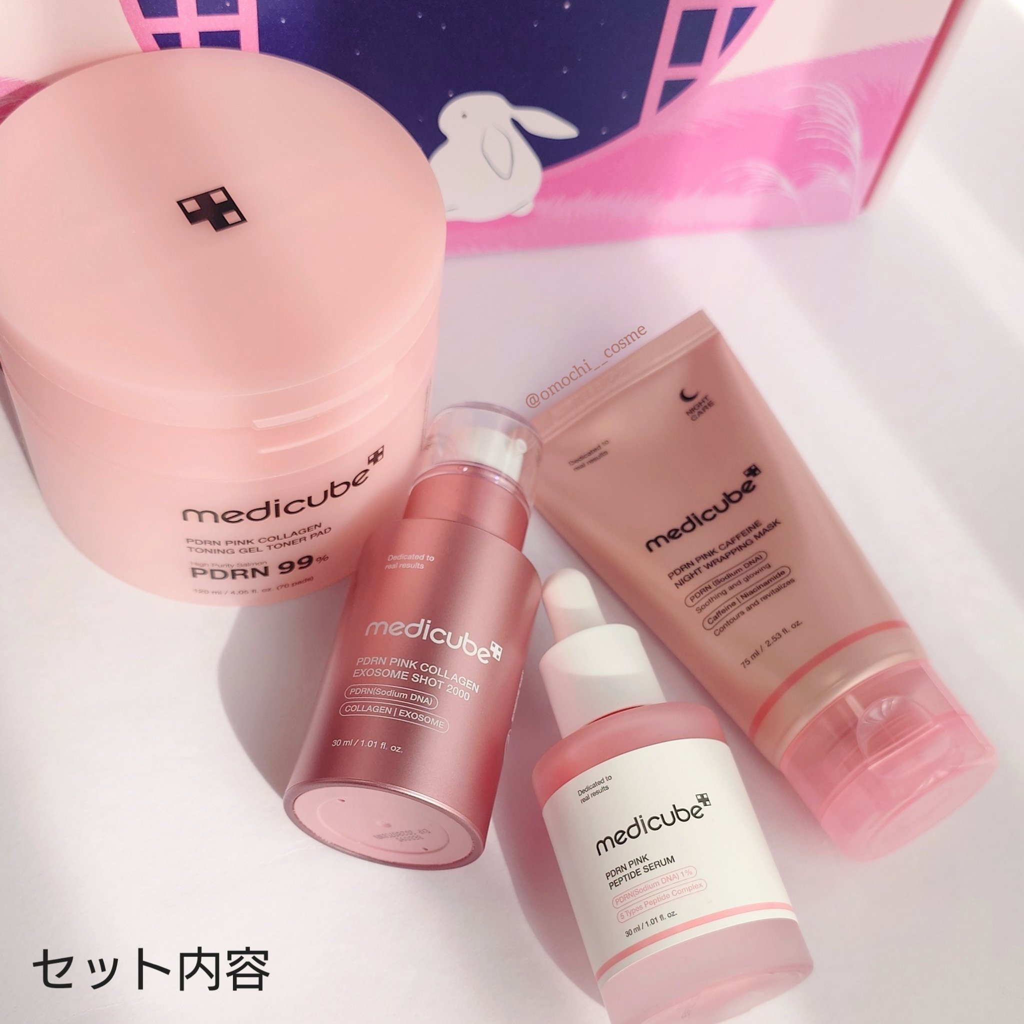 Qoo10メガ割購入品!今回はmedicubeのPDRNピンクセットを購入しました!medicubeの商品は初めて使うのでわくわくしてます💓♡セット内容♡・PDRNコラーゲントーニングゲルトナーパット・コラーゲンナイトラッピングマスク・PDR...
