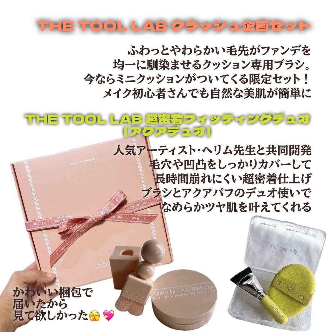 #PRTHETOOLLAB🩷アクアデュオメイクアップアーティストのヘリム先生と共同開発商品で3mmのフラットブラシでが薄く均一に密着✨️水に濡らして使用するアクアパフでクーリング感&密着感アップしてくれるよ!💜クラッシュ企画セットツール職人が...