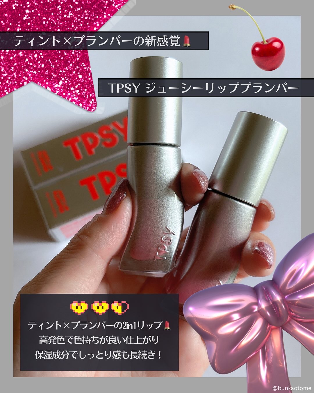 【ティプシージューシーリッププランパー】色は02HOMEBODYをお試ししました!ふんわり発色のライトクールピンクとのことですが思っていたより濃く発色しましたぷるんとしたボリューム感を演出するリッププランパー☺️透明感ありリップオイルのような...