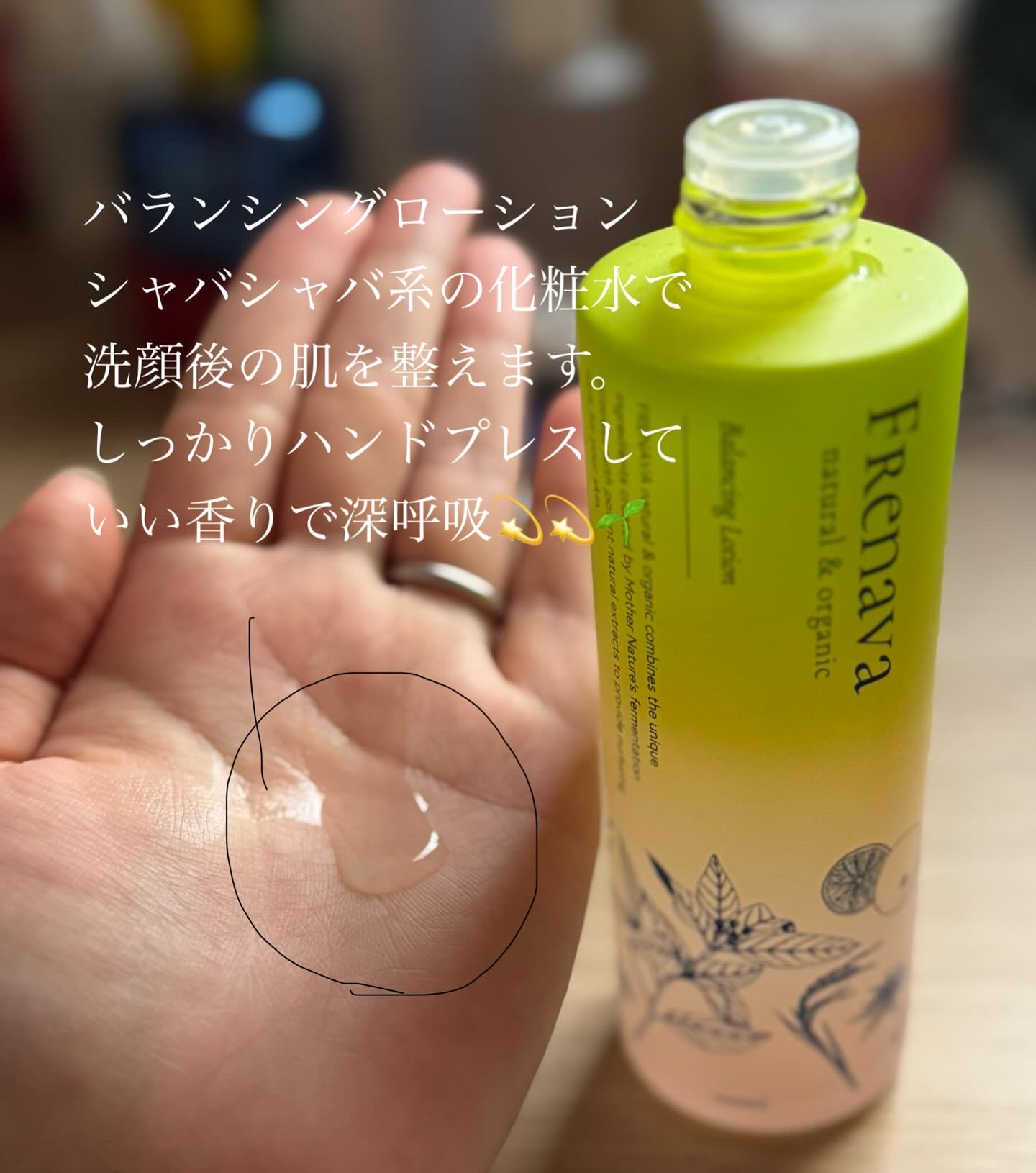 -FRENAVAnatural&organic-BalancingLotionベタつきのないさらっとしたテクスチャーで爽やかな使用感とみずみずしい香り🌿肌荒れを防ぎながら保湿できるのが嬉しい◎クロモジ蒸留水に発酵由来の保湿成分である有機酒粕エ...
