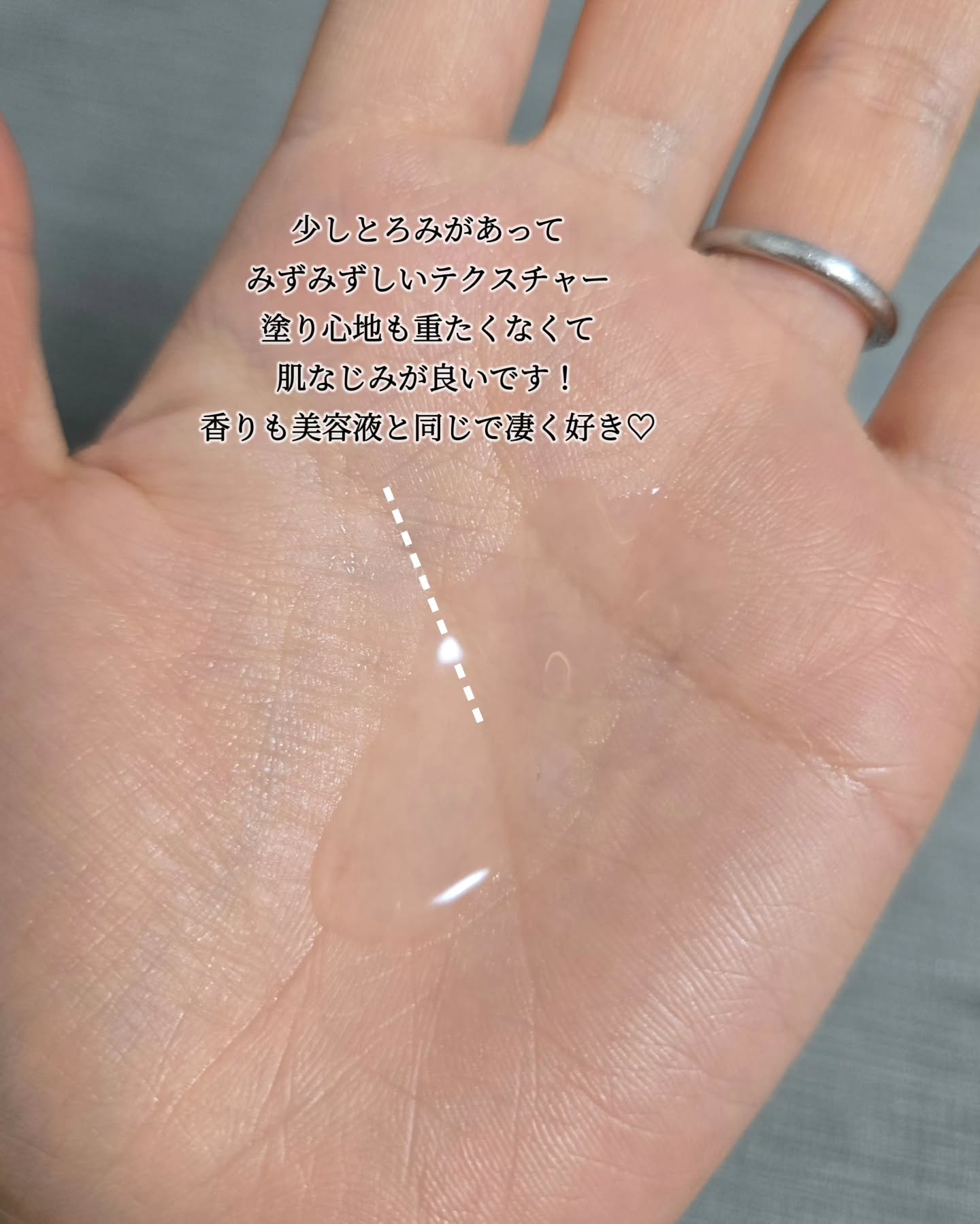 | ほんのりとろみがあるのにベタつかず、スッと肌になじむ! | 詳細を見る | ||
