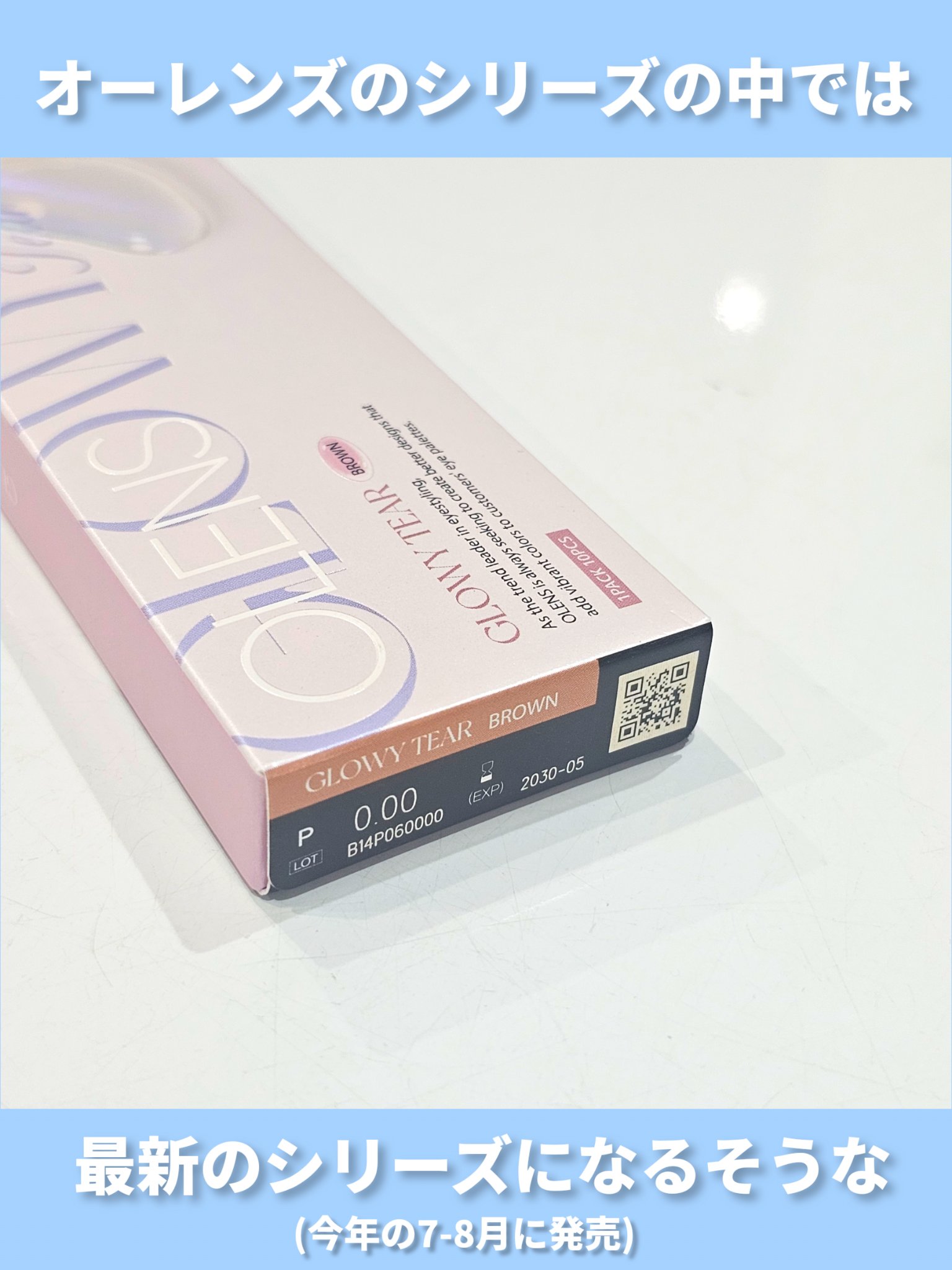 - 韓国カラコン業界の話題のブランド『OLENS(オーレンズ)』の日本正式承認商品シリーズ。世界中から注目を浴びるグループ「NewJeans (ニュージーンズ)」がイメージモデル。 OLENSの中でも圧倒的人気を誇る「グローイ」から、もっとうるみとぷるぷる感をプラスした「うるぷる×ツヤ盛れ!」な『グローイティア』が新シリーズとして登場。OLENSだから実現できる極微細着色との新感覚水光レンズです。 「Tear(涙)」から名を取ったように、まるで涙を浮かべたような、守ってあげたくなる目元を演出できます。 ■OLENS Glowy Tear (オーレンズグローイティア) ・枚数:1箱10枚入り ・カラー :全2色 ■使い方 コンタクトレンズは高度管理医療機器です。必ず眼科医の処方に従って購入してください。 ■使用上の留意事項 コンタクトレンズは高度管理医療機器です。眼科医の指導に従い装用期間を厳守し、正しくお使いください。眼の定期検査を必ず受けてください。添付文書を必ず読み、取扱方法、装用時間を守って正しくお使いください。少しでも異常を感じたら、直ちに眼科医の検査を受けてください。