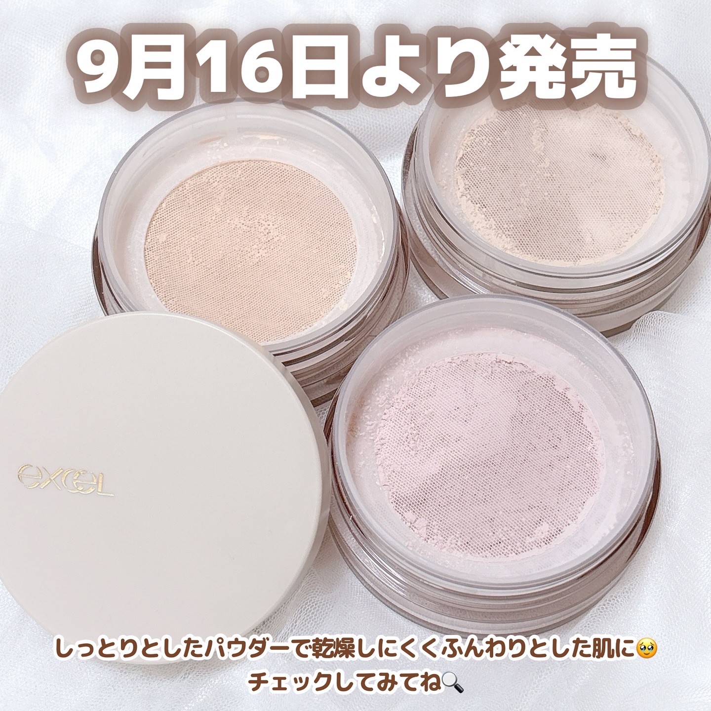 - 触れた瞬間お肌に溶け込むようにとろけて、贅沢うるふわ肌へ 美容液で包み込む、プレミアムなスキンケアパウダー 1. しっとりとお肌に溶け込むように馴染む、美肌パウダー設計。 上質な肌ざわりを叶えます。 ・メルティレア処方(NEW) お肌の上でとろけるようなパウダーで、なめらかでやわらかい仕上がりに。 ・アミノ酸コーティング処方 ベースとなるパウダーをアミノ酸*1でコーティング。お肌にしっとりと密着し、贅沢うるふわ肌に仕上げます。 ・セラミド内包パウダー*2 お肌のうるおいバリアをサポートし、乾燥から守ります。 2. お肌をケアするこだわりの 20 種の美容液成分(保湿)を贅沢配合。 3. 毛穴やお肌の凹凸をカバー。 乾燥・くずれを防いで、透明感*3あふれるようなつけたての美しい仕上がりが続きます。 <EX01 シルキーベージュ> やわらかなセミマット肌に。ピンクパール配合。 <EX02 グロウベージュ> 明るく華やかな印象のツヤ肌に。 7色(ピンク、パープル、ブルー、グリーン、オレンジ、 ゴールド、シルバー)の微細パール配合。 <EX03 シマーピンク> ほんのり血色感をもたらすツヤ肌に。 ピンク&パープルパール配合。 *1 ジラウロイルグルタミン酸リシンNa(保湿) *2 コメヌカスフィンゴ糖脂質、コメヌカ油、シクロデキストリン(すべて保湿) *3 メイクアップ効果 <EX01 シルキーベージュ,EX02 グロウベージュ,EX03 シマーピンク> ◆2025年8月29日からロフト及びプラザ、9月2日よりエクセル公式オンラインショップにて先行販売