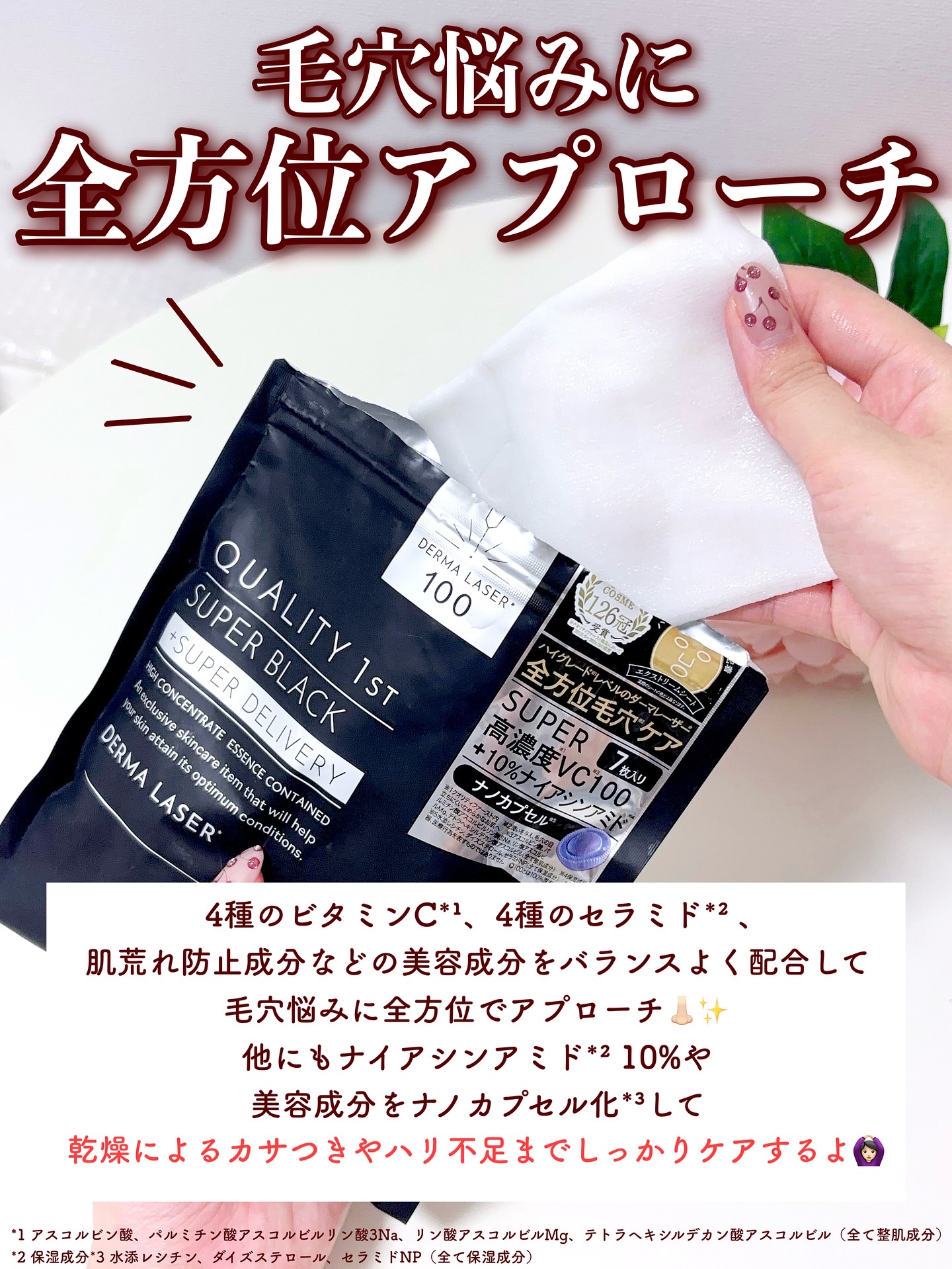 🍑クオリティーファースト ダーマレーザー スーパーブラックマスク 7枚入り ¥1,100°○°○°○°○°○°○°○°○°○°○°○°○°○°○°○°○このシリーズは一押し!!このスーパーブラックはマスクが厚くて密閉感と保湿力がある気がす...