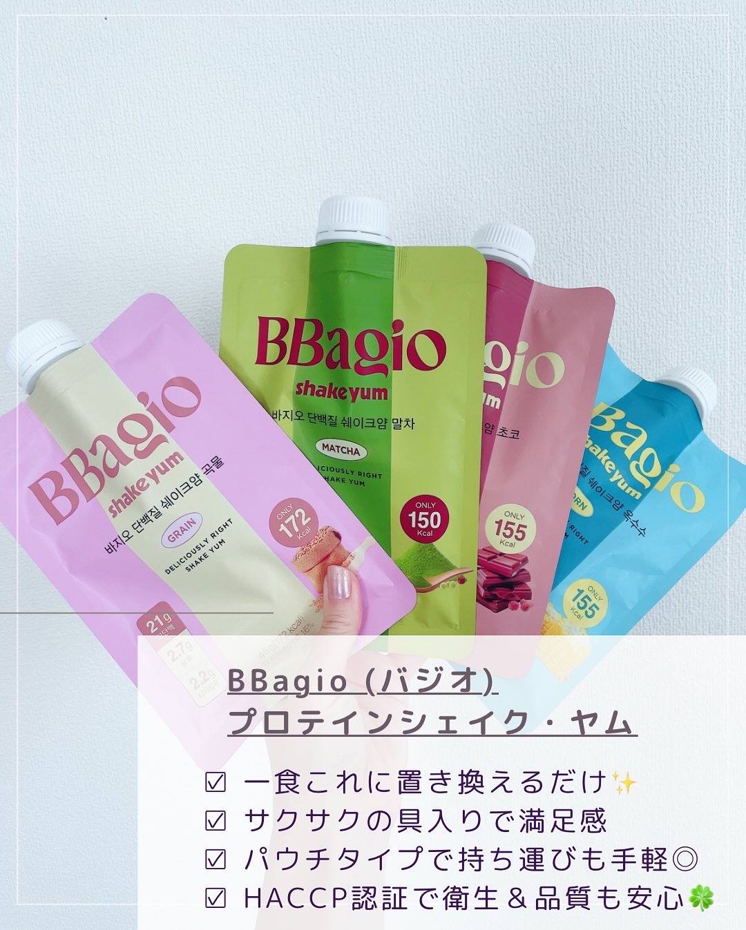 BBagio:バジオプロテインシェイクヤム45gタンパク質含有量最大21gで植物性7:動物性3の理想的なタンパク質比率のプロテインシェイク💁♀️複合乳酸菌や酵素に食物繊維配合かつトッピング入りでやさしく消化しながら満腹感が続きます🥣抹茶・チ...