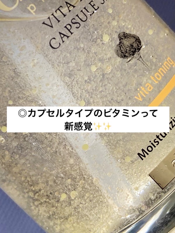 - 肌を明るくする4万*Vitaカプセルで透き通った華やかなビタトーニング べたつかずなめらかなビタミンカプセルセラム *本品容量100ml基準(製造バラつきあり、内部算出基準) 水分で満たされたふっくらとした水分ベースとビタミンカプセルが素早くブレンドされ水分膜を形成し、べたつかず、なめらかな仕上がり 【ご使用方法】 洗顔後、適量を手にとり、肌のキメに沿ってやさしくのばした後、軽くたたいて吸収させます。 TIP.2~3回レイヤリングすると、保湿·栄養集中ケアに役立ちます。 【使用上の注意】 お肌に異常が生じていないかよく注意して使用してください。 化粧品がお肌に合わないとき即ち次のような場合には、使用を中止してください。そのまま使用を続けますと、症状を悪化させることがありますので、皮ふ科専門医等にご相談されることをおすすめします。 (1)使用中、赤味、はれ、かゆみ、刺激、色抜け(白斑等)や黒ずみ等の異常があらわれた場合 (2)使用したお肌に、直射日光があたって(1)のような異常があらわれた場合