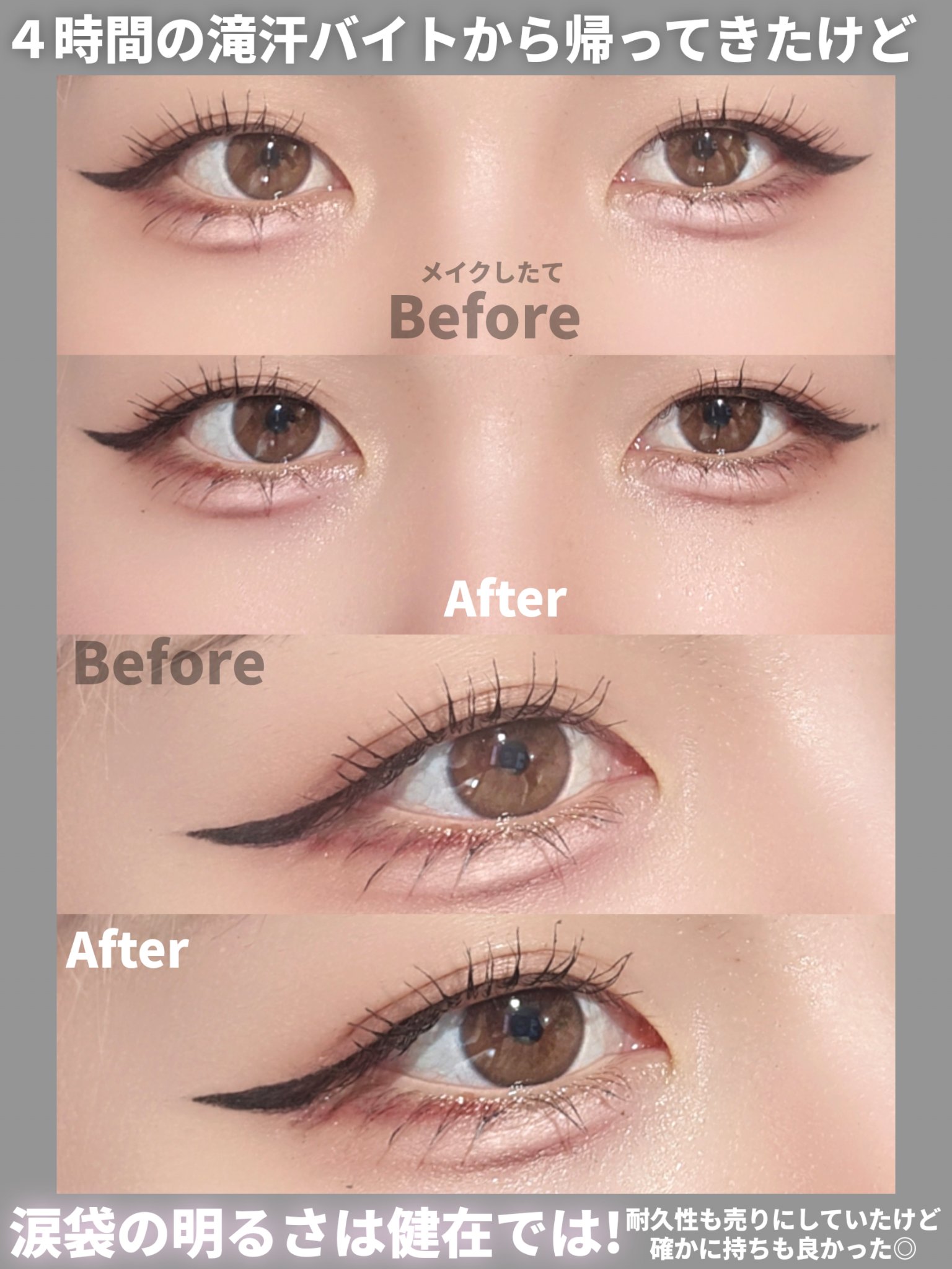 01シアーブラックを初めて使った時に感動し ヌードアイラッシュは基本的に売り切れてるので… 03のシアーグレーをGETしたのですが 太陽に透かすと03シアーグレーは やはり液が半透明のブラウンで 繊維は黒なので 色味に大きな差はなく ブラウンでも繊維が黒なので目力が死なないのも◎ カールキープもお湯落ちとは思えないくらい良い、 ダマにもならずスっとキレイなセパレートまつげが 簡単にできてとっっってもお勧めですわ…!