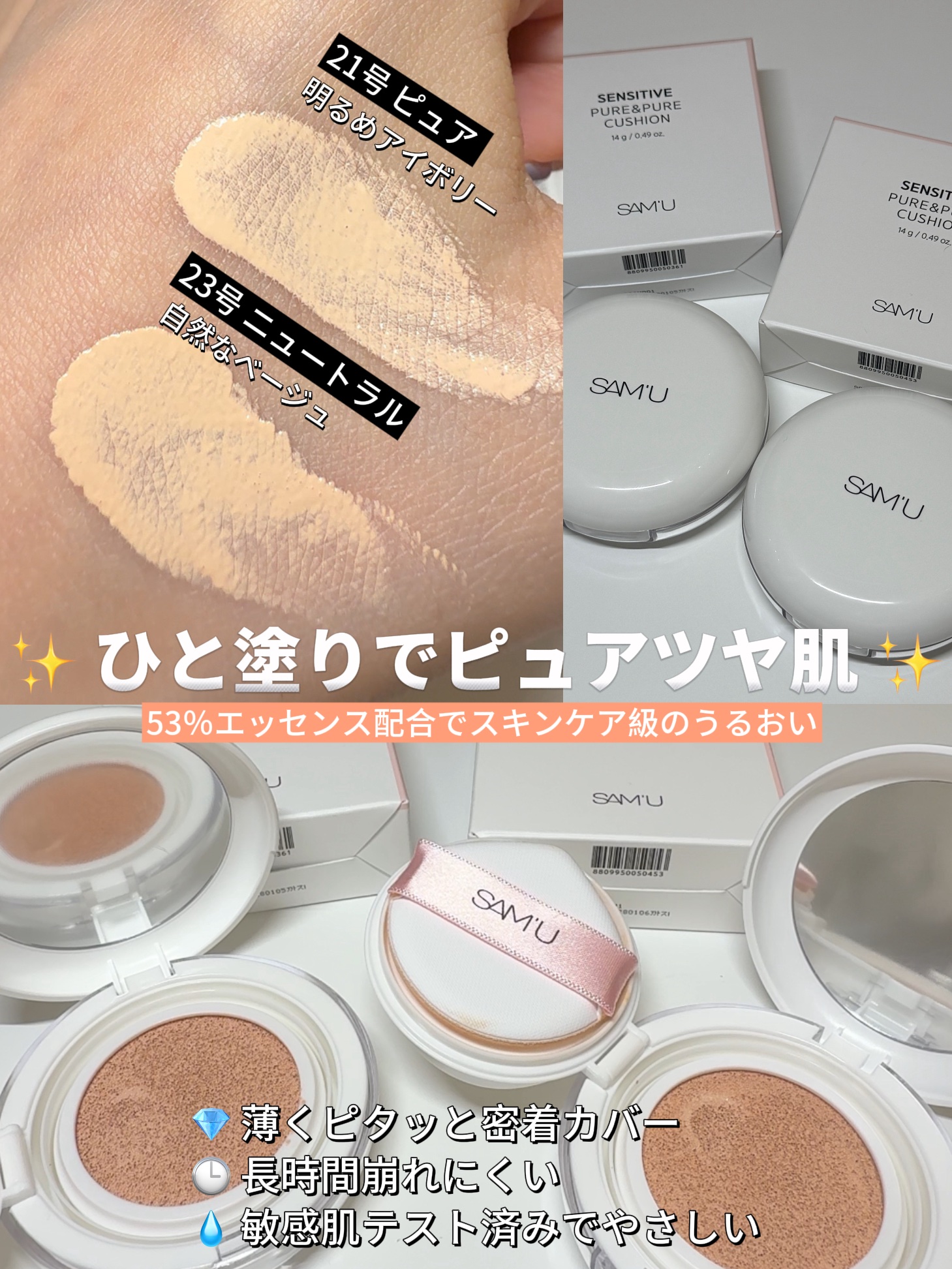 ・・・公式アンバサダー投稿・・・\SAM'U・素肌のようなピュア肌になろ💓/▶︎ピュアアンドピュアスキンティント▶︎ピュアアンドピュアクッション/21号・23号【ピュアアンドピュアクッション】カラー:2色展開☑︎21号:明るく華やかなアイボリ...