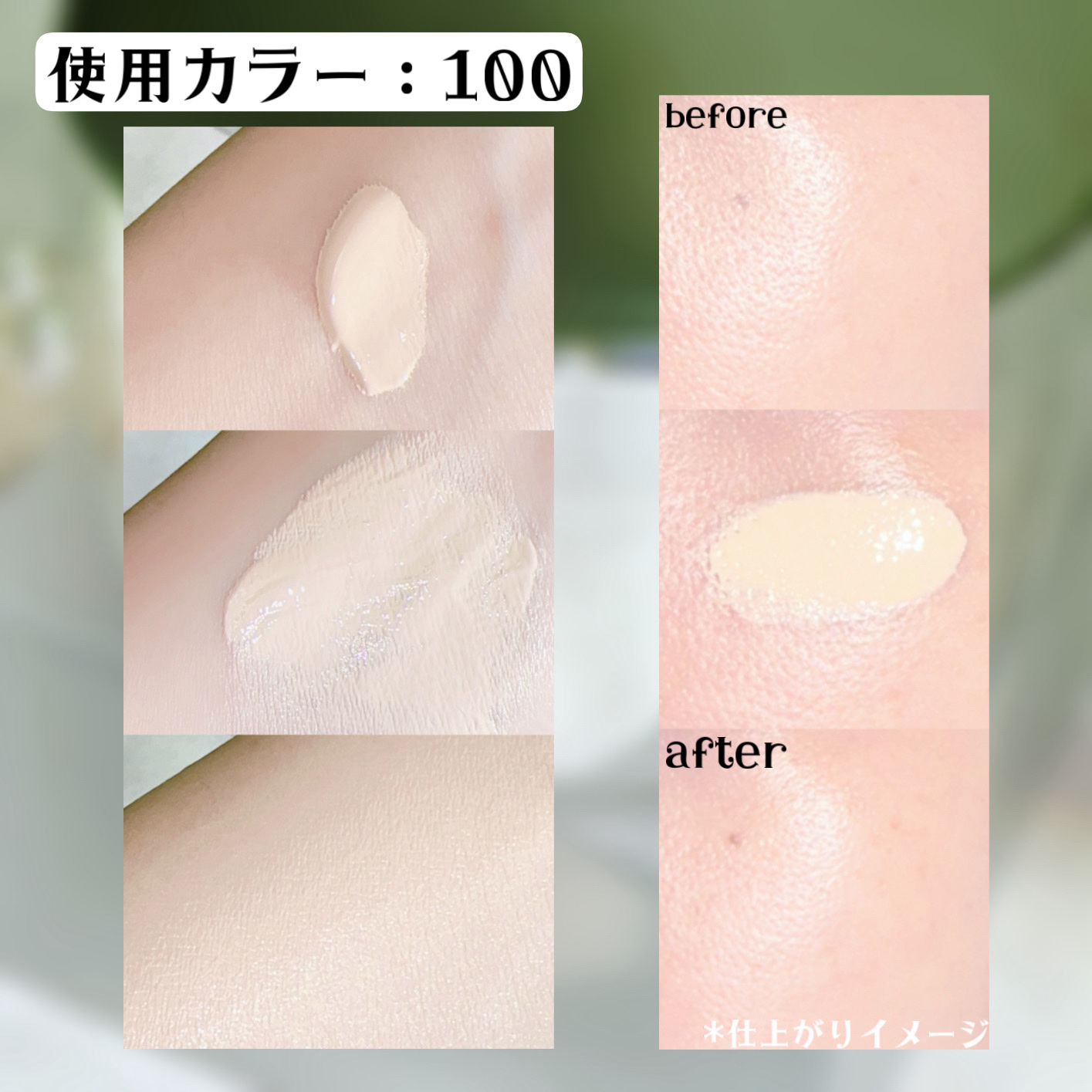 クリーミィーなテクスチャでスキンケアクリームのようになめらかにのび、指塗りでしっかりフィットしてくれます。 カバー力はしっかりめにありながら厚塗り感出ず肌への溶け込むような仕上がりはお気に入り。