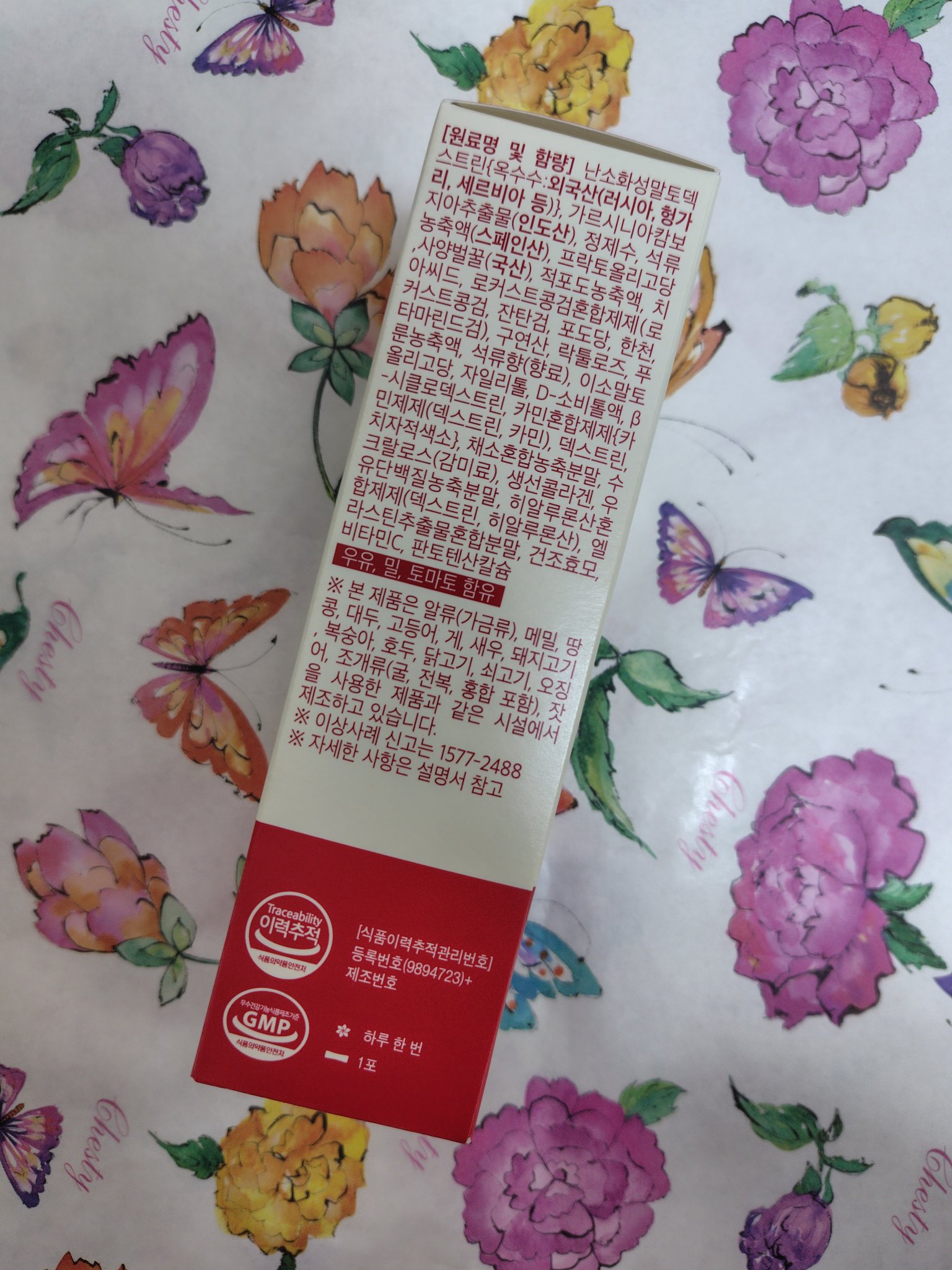 - <3本入り(25g×3本)> 難消化性デキストリン、ザクロ濃縮液、フラクトオリゴ糖、ガルシニアカンボジアエキス、はちみつ、赤ブドウ濃縮液、チアシード、ラクチュロース、プルーン濃縮液、イソマルトオリゴ糖、野菜混合濃縮粉末、フィッシュコラーゲン、乳たんぱく、エラスチン、乾燥酵母/増粘多糖類、クエン酸、甘味料(キシリトール、ソルビトール、スクラロース)、香料、β-シクロデキストリン、着色料(カルミン酸、クチナシ)、ヒアルロン酸、V.C、パントテン酸Ca、(一部に乳成分・小麦を含む) <10本入り(25g×10本)> 難消化性デキストリン、ザクロ濃縮液、フラクトオリゴ糖、ガルシニアカンボジアエキス、はちみつ、赤ブドウ濃縮液、チアシード、ラクチュロース、プルーン濃縮液、イソマルトオリゴ糖、野菜混合濃縮粉末、フィッシュコラーゲン、乳たんぱく、エラスチン、乾燥酵母/増粘多糖類、クエン酸、甘味料(キシリトール、ソルビトール、スクラロース)、香料、β-シクロデキストリン、着色料(カルミン酸、クチナシ)、ヒアルロン酸、V.C、パントテン酸Ca、(一部に乳成分・小麦を含む)